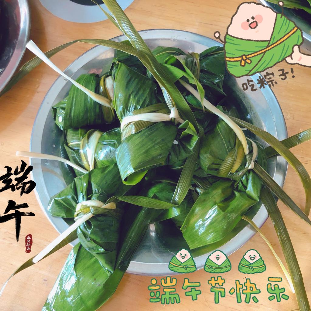 食堂的叔叔阿姨为我们提供了泡好的糯米、粽叶和蜜枣。快看!你馋了没有?