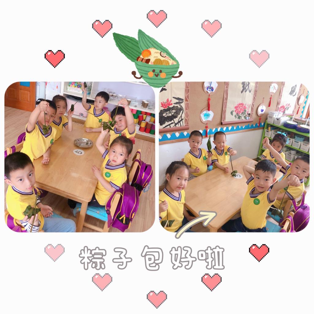 宝贝们互帮互助,在不懈努力中,粽子终于包好啦!咕噜咕噜,热气腾腾的粽子飘着清香!宝贝们亲手包的粽子,包含了满满的爱和祝福~