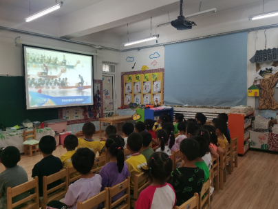 赛龙舟,也是端午节的主要习俗。相传楚国人因为舍不得屈原投江而死,许多人都划着船追赶想拯救屈原。之后每年的五月初五人们都会赛龙舟来纪念屈原。观看赛龙舟的视频,小朋友们被龙舟手的拼搏精神所感染,也更深刻地感受到合作的力量。