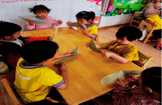 老师通过闻香包、摸粽叶等活动,让孩子们通过多种感官去感受和体验,亲近端午文化,从而丰富增添爱国之情。