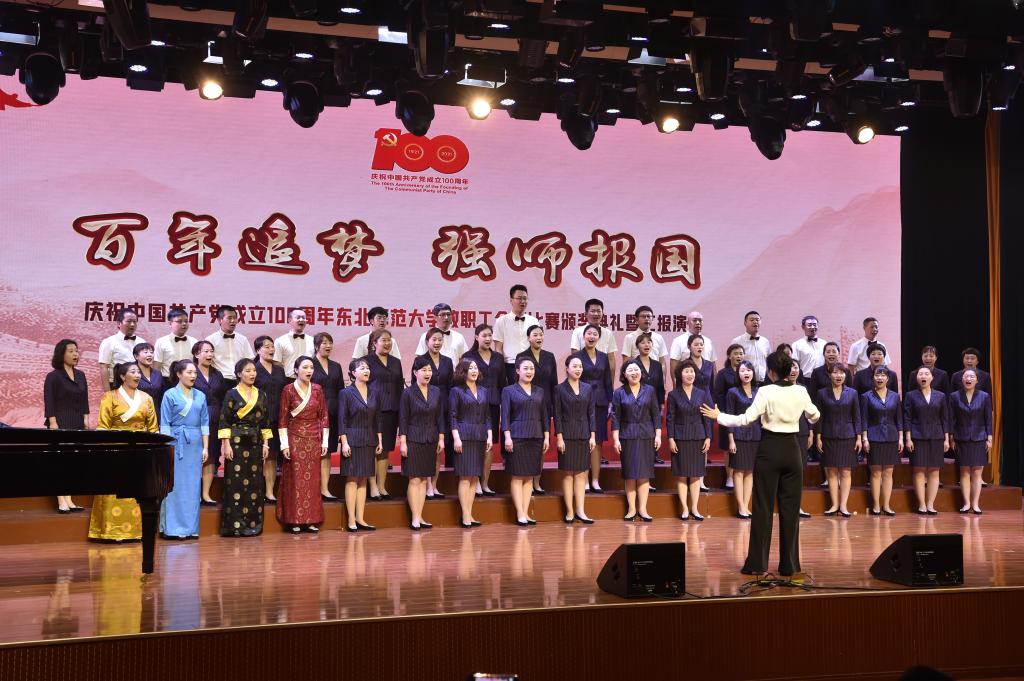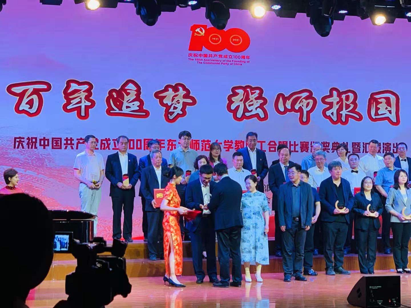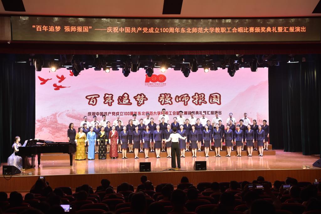 近日,为了庆祝中国共产党成立100周年,由学校党委宣传部、校工会主办的“百年追梦,强师报国”教职工合唱比赛颁奖典礼暨汇报演出圆满落下帷幕。我园在缴润凯园长和张泽东书记的大力支持下,组织44名教职工与6位在我园培训的西藏日喀则地区第五批“组团式”教育管理干部及骨干教师成立了附属幼儿园合唱团,演唱了《红星照我心》和《灯火里的中国》两首歌曲,为评委和观众献上了精彩的表演并荣获一等奖。