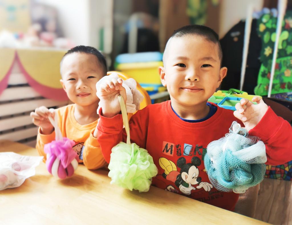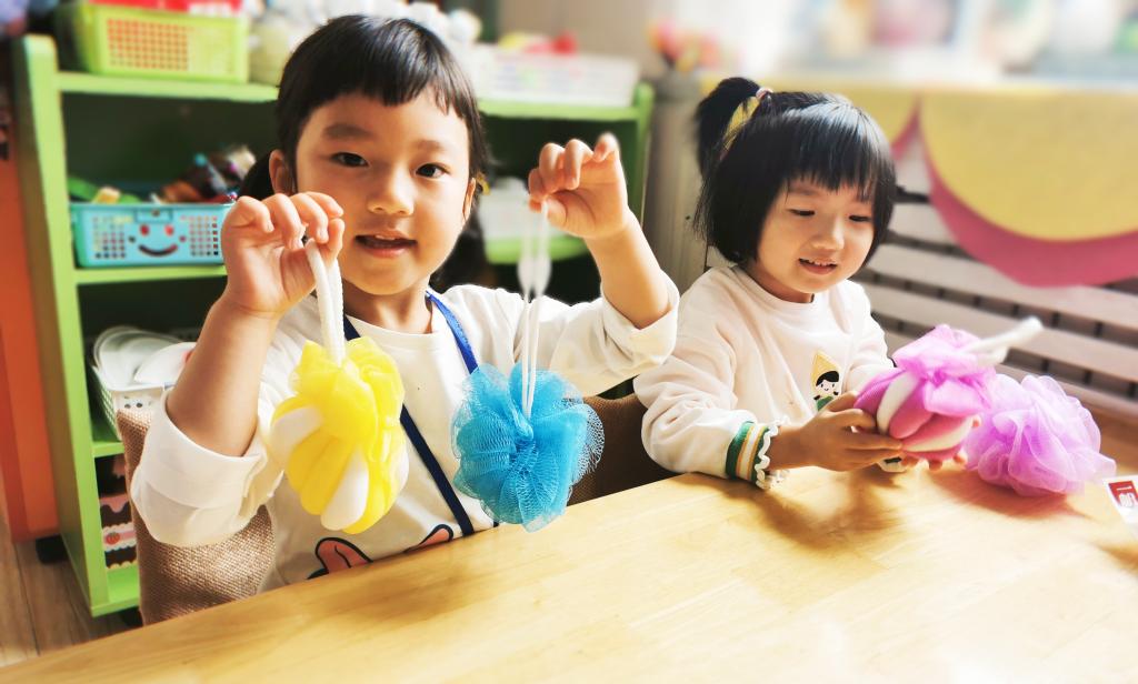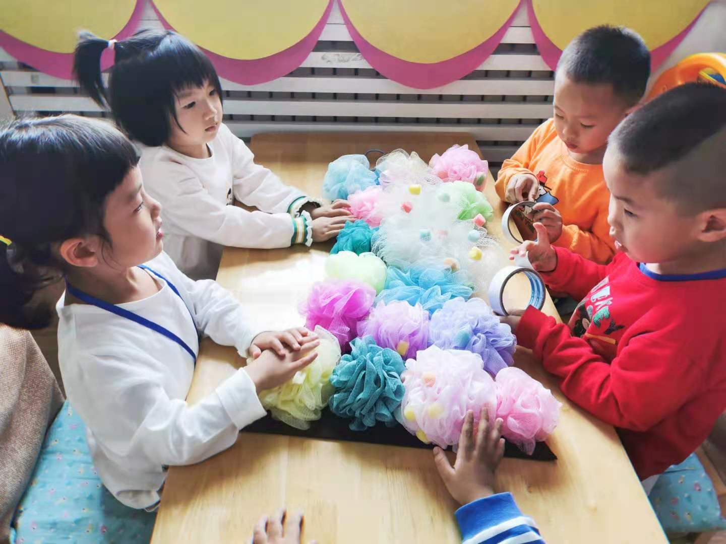 “浴球”除了洗澡的时候可以用到,还能做什么呢?那就让我们来做一条“晚礼裙”吧!小朋友在家中收集了各种颜色、大小、样式的浴球,幼儿根据自己的想象,拼摆好裙子的形状,再粘好,创意无限、想像无限的裙子就出现了!