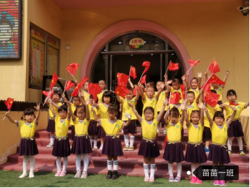 苗苗五班--名字叫中国。宝贝们在唱到“她的名字,叫中国”时,声音格外响亮,民族自豪感精神迸发。