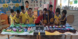 孩子们的世界是多彩的,孩子们的世界是绚丽的,让孩子用双手去感触世界的美妙。我们把艺术活动作为孩子感受美、表现美和创造美的重要形式,让幼儿用自己的方式表达对周围世界的认识。在“乐享创意 稚美童趣”创意作品展活动中,苗苗一班师幼根据已开展的主题活动“有趣的水”展开讨论,从帮助孩子们知道水来之不易,要保护水资源的理念,延伸到让孩子们知道保护我们赖以生存的环境的重要性,确定了“保护环境 守护家园”为创意作品主题。