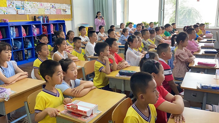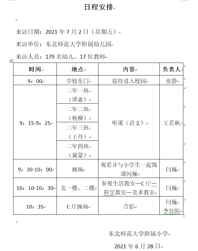 科学合理的幼小衔接工作,是确保幼儿身心健康发展的基础,也是我园教育活动中重要内容,参观小学更是我园与小学顺利衔接最直观、有效的途径。对孩子们而言,小学是一个充满向往、神秘的地方。为了满足孩子们的好奇心和对小学生活的探究愿望,帮助他们从生理、心理、行为习惯等方面做好入学前的准备,更全面、直观地了解小学,以积极的心态迎接未来的小学生活,7月2日上午,我园169名大班幼儿走进东北师范大学附属小学,近距离地感受小学生的快乐、学习生活。附属小学也做了周密的接待计划欢迎孩子们的到来。