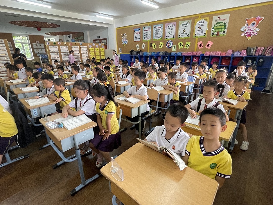 孩子们走进明亮的教室,看到整齐的桌椅、小学生端正的坐姿、有序的课堂纪律,无比激动和向往,更有一种想快速融入其中的意愿。孩子们也充分感受到了小学与幼儿园的不同。
