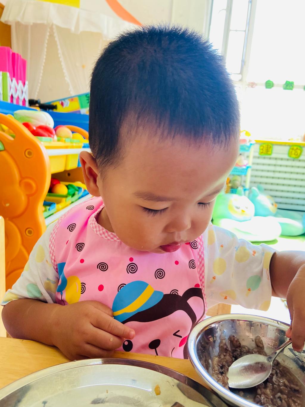 第一次,独自跟那么多小朋友一起玩。