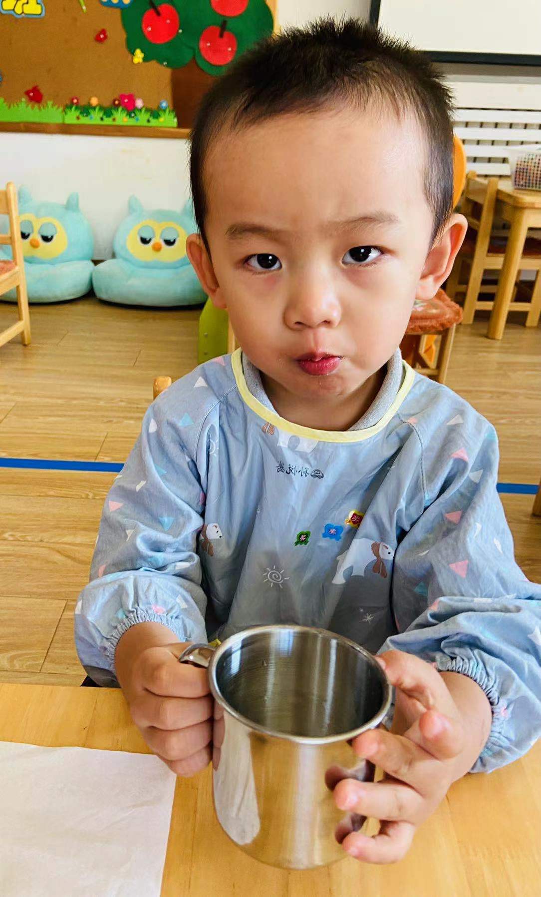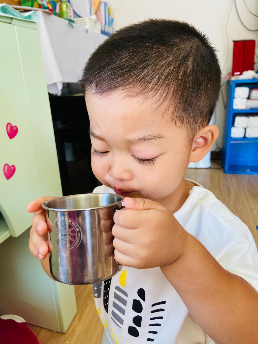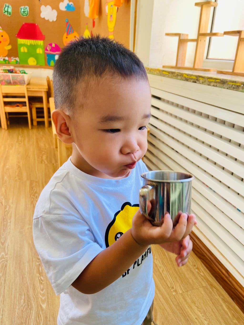 老师说要多喝水才不会生病!我会自己大口咕噜咕噜喝水哟,真棒!