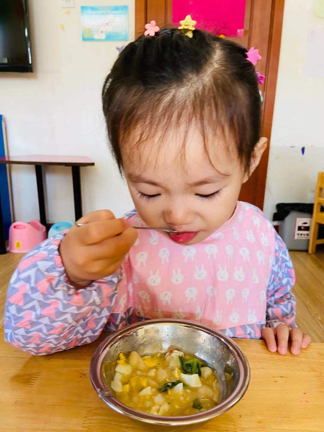 幼儿园的饭菜真美味,营养均衡好搭配,我们身体棒棒棒!