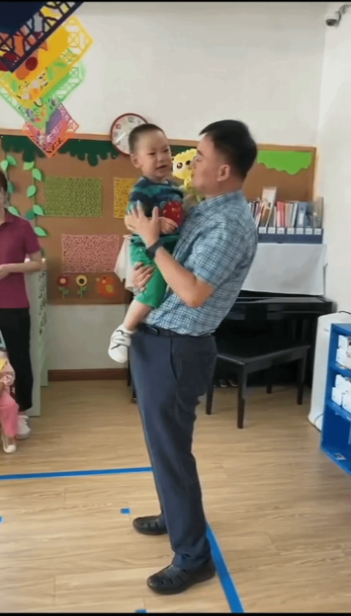 亲爱的园长老师也来到了班级看我们,他亲切温柔的抱起了正在哭泣的我,轻轻地安抚着我,和蔼地对我说:“不哭了,你看这个小朋友拿着什么玩具呢?你们一起玩好吗?”我感觉到了温暖。