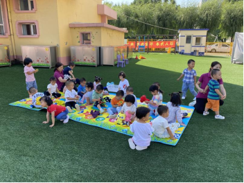 乘着微微秋风,我们一起在幼儿园宽阔的草地上玩耍,一起游戏。