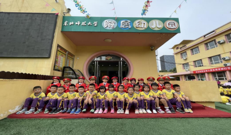 升国旗奏唱国歌,全体师生行注目礼。五星红旗冉冉升起,庄严的国歌回响在东师附幼的上空!
