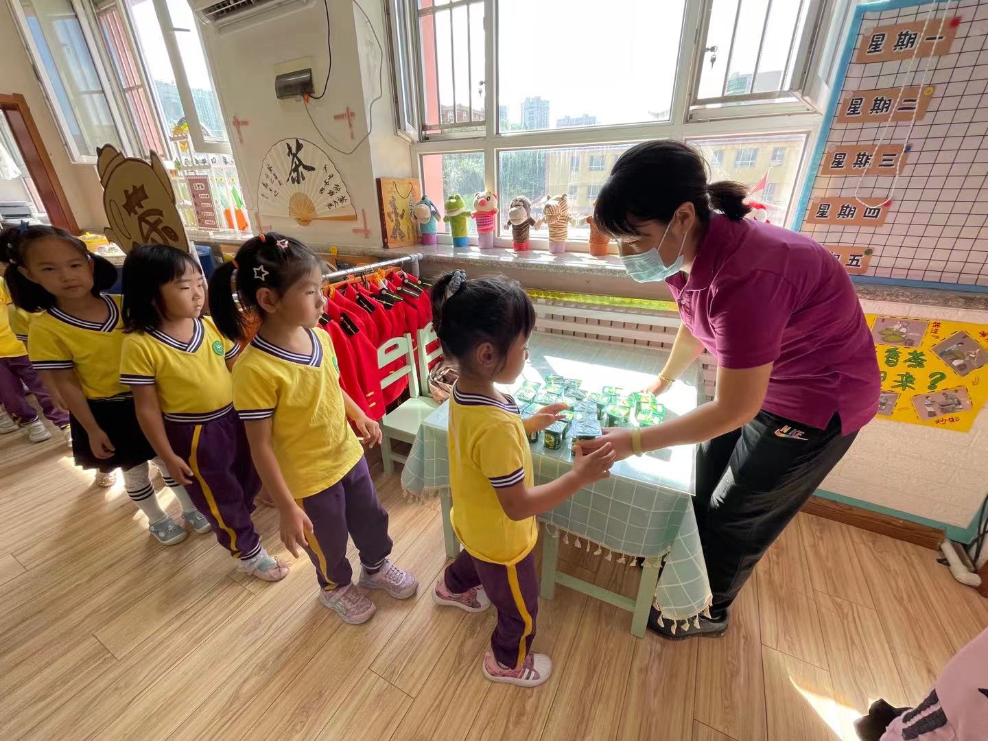 宝贝们一声声“早上好!伴随着晨间户外音乐响起,热情饱满的童音,响亮而亲切打招呼、问好,认真的态度,感染着所有的老师和小朋友,稚嫩的声音响彻整个幼儿园。
