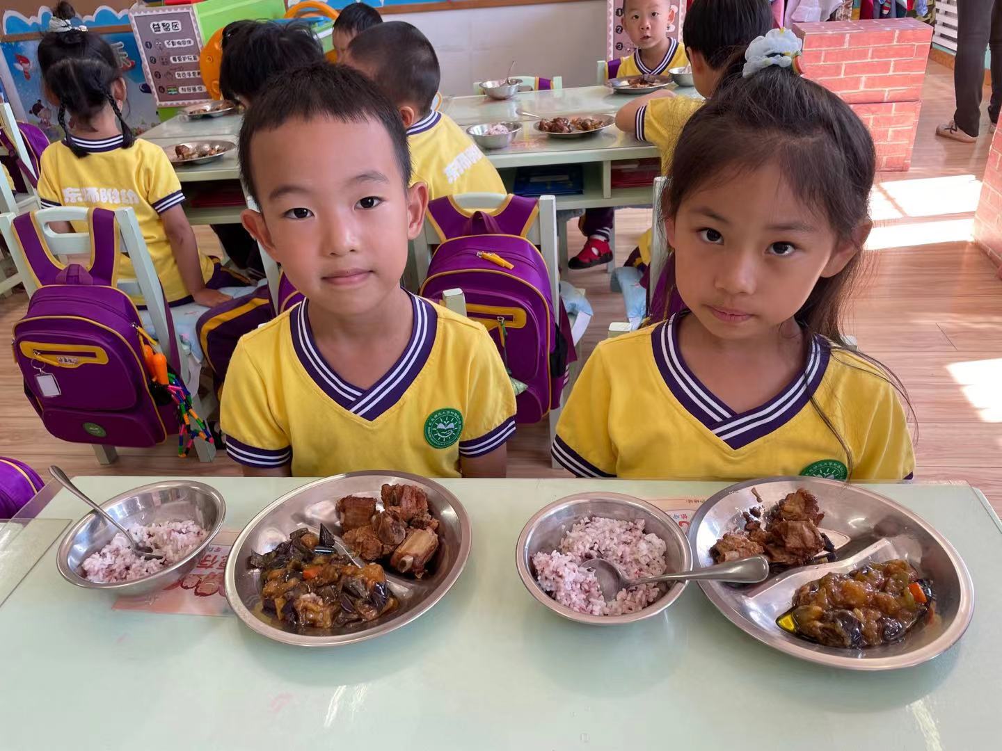 左手扶碗右手握勺,一口饭来一口菜,不挑食不剩饭。