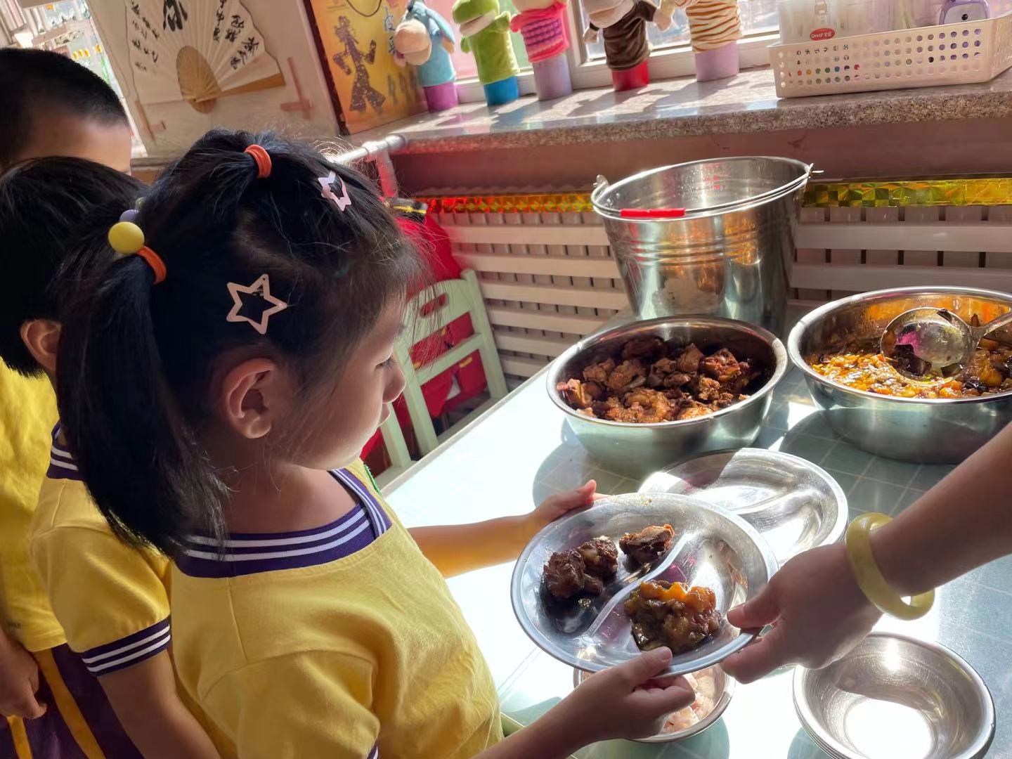 有秩序排队,双手接饭菜,对老师说谢谢。
