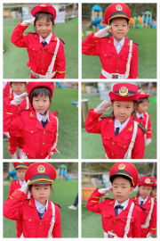 升国旗,奏国歌,全体老师,小朋友立正,脱帽,行注目礼。
