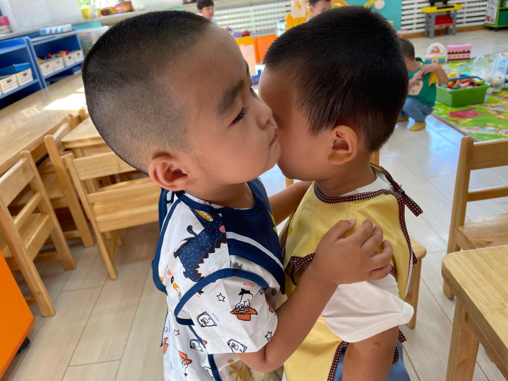 这是我第一次交到的新朋友,我们一起玩耍真开心,我们抱一抱,相亲相爱在一起,还有我喜欢的娃娃家游戏。