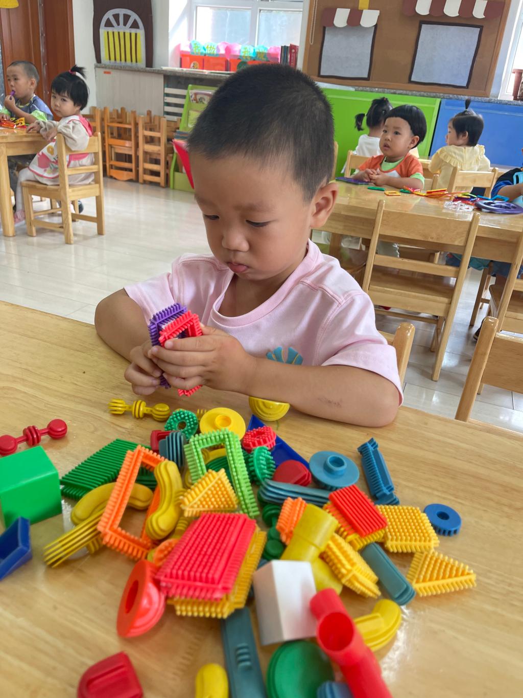 这是我第一次独立在幼儿园玩游戏,玩玩具,找到了自己喜欢的玩具,就像在家里一样可以选择喜欢的玩具来玩,这些玩具我都没有玩过呢!幼儿园真好,老师妈妈更好,我爱我的幼儿园。