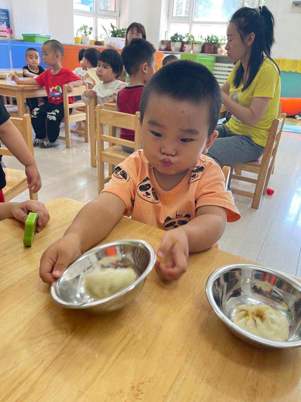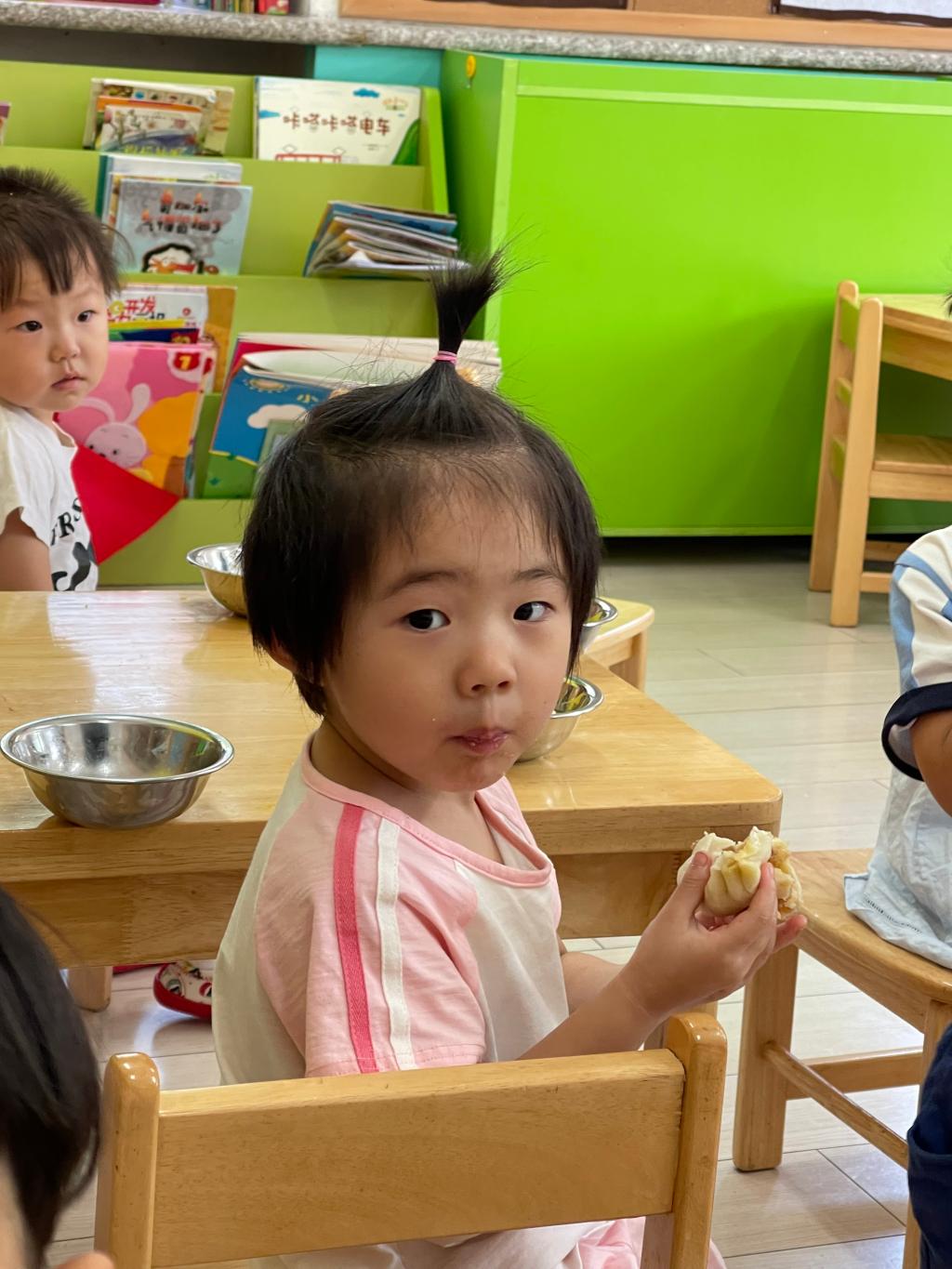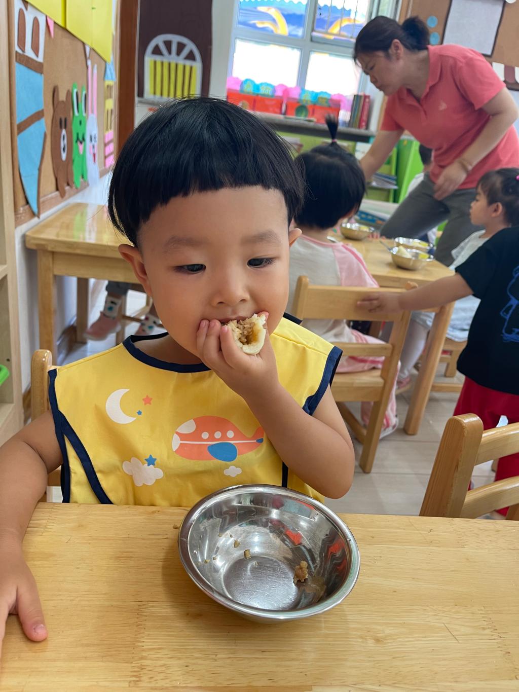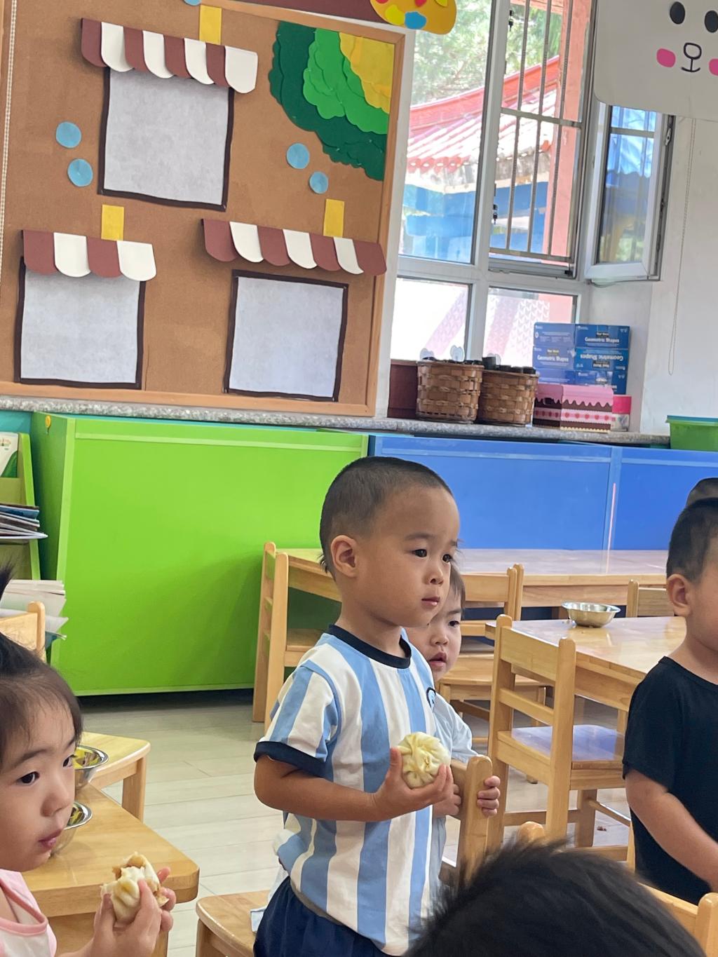这是我在幼儿园第一次吃的香香的包子,它怎么就这么好吃呢?我要多多的吃!幼儿园的生活真好,不仅有我喜欢的老师,还有香香的包子哦!!!看我吃的香不香?你想不想吃呢?