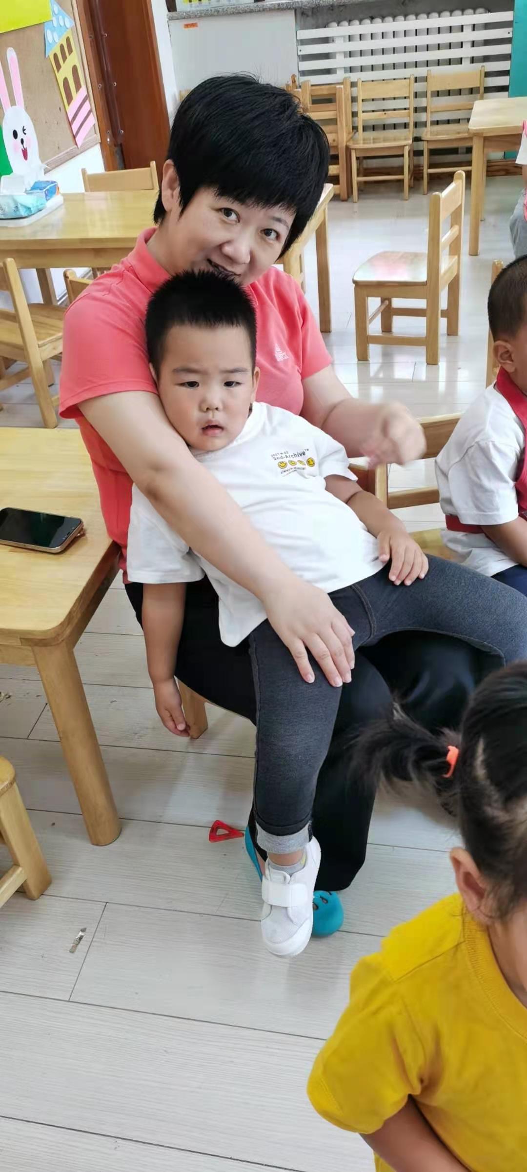 可爱的老师抱着我,就像妈妈一样,轻轻的抱着我在他的身边,告诉我:宝贝宝贝你最棒了。
