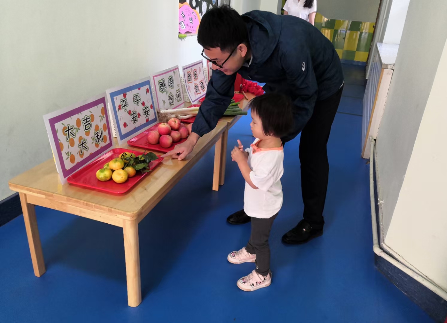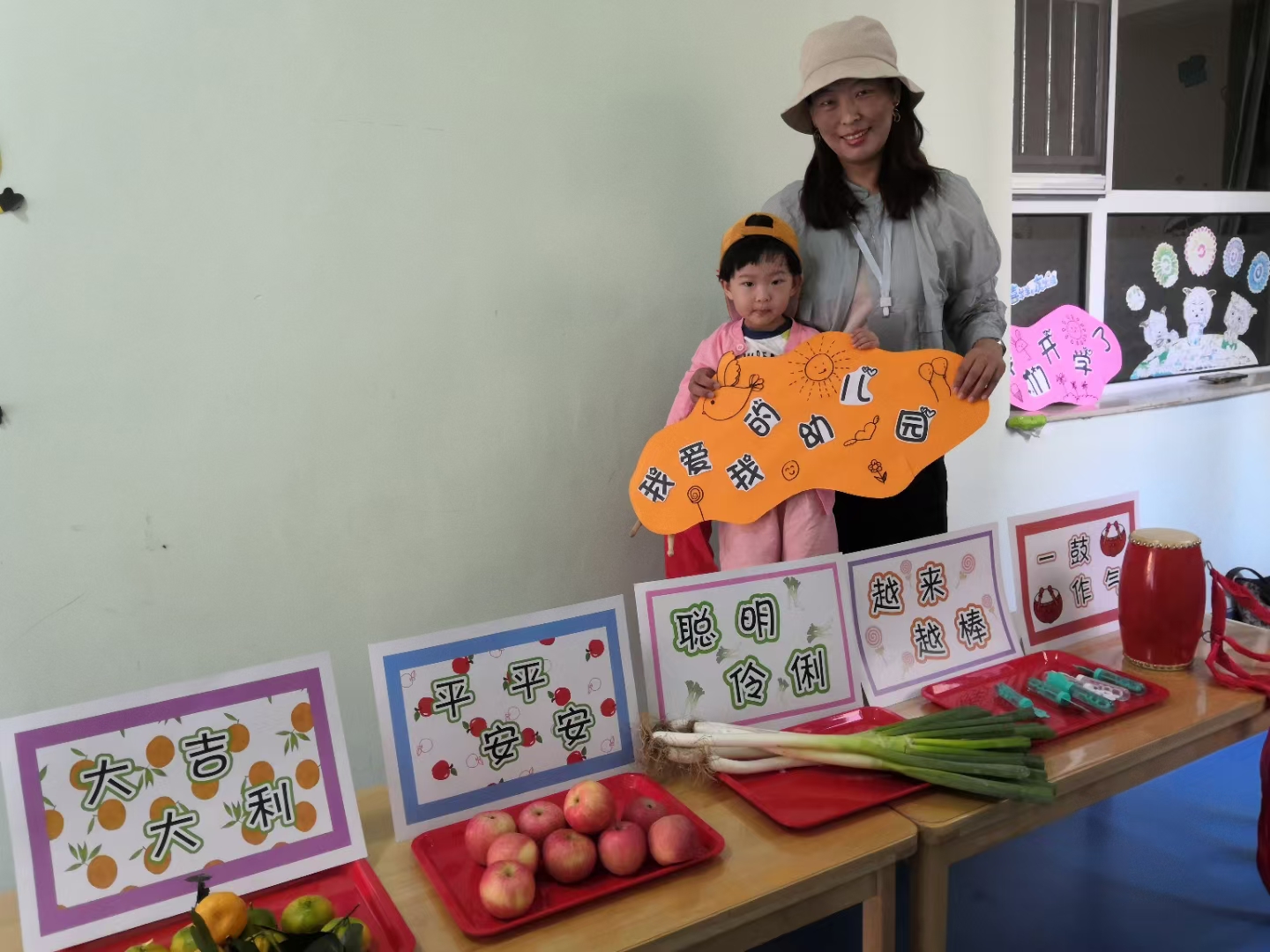 豆豆五班的孩子们用小手触摸苹果、桔子、大葱、棒棒糖并敲响饱含浓浓祝福的小鼓,传递着老师妈妈对孩子浓浓的爱意和深深的祝福。