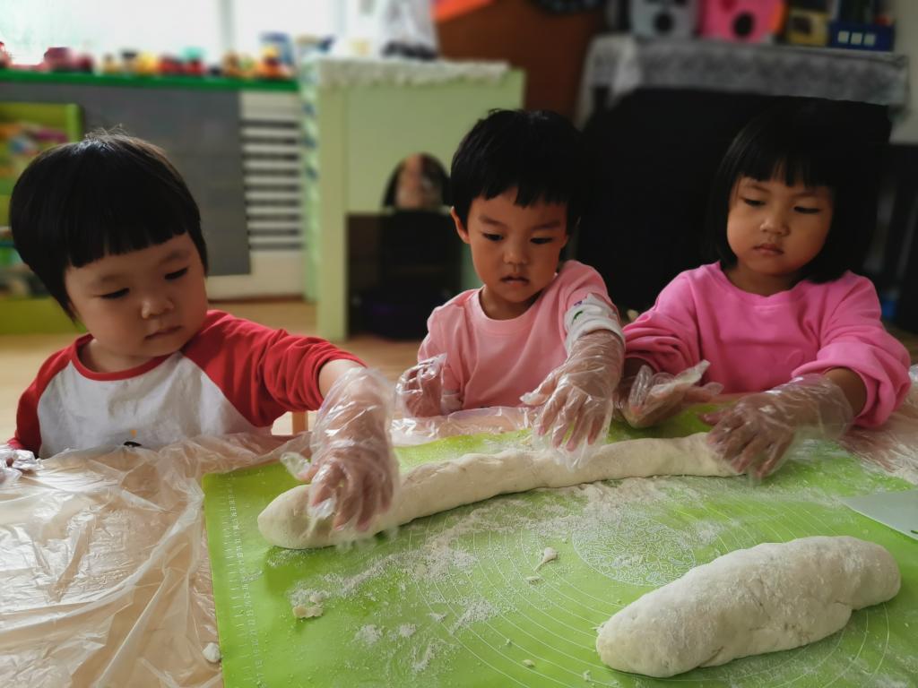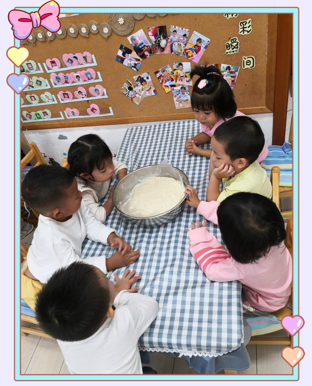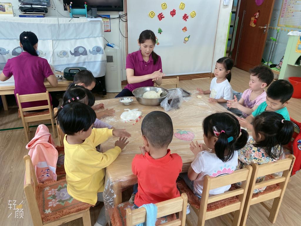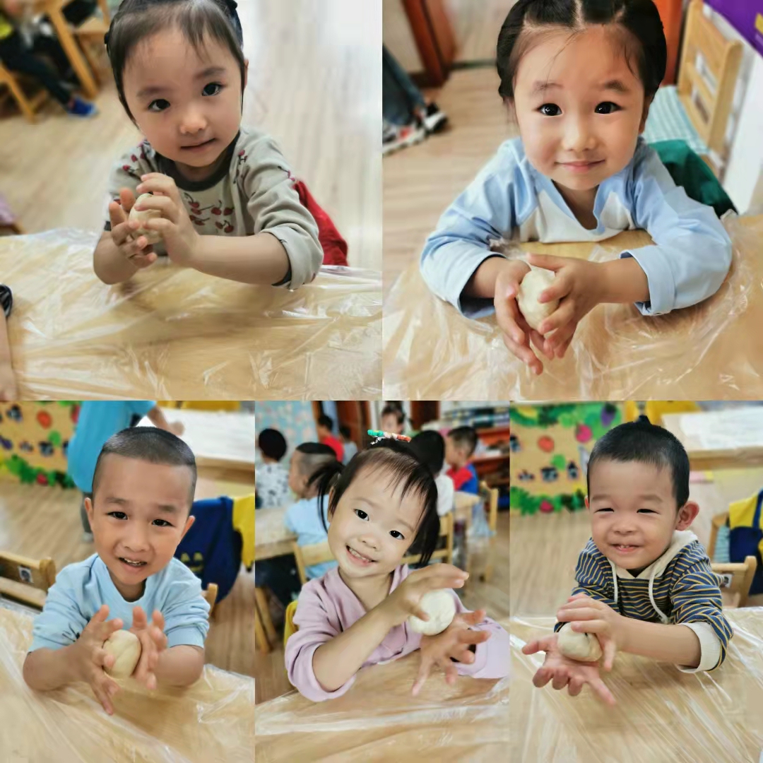 洗干净小手,铺好桌布,“我们要开始制作团圆饼啦!”听到老师的话,宝贝们纷纷挽起了自己的小袖子,迫不及待的准备大展身手。老师将事先醒发好的面团放在小桌子上,宝贝们立刻就兴奋了起来,有的用小手摸一摸、有的把小鼻子凑上去闻一闻、有的抓出一小块在手里感受...宝贝们都对这个神奇的大面团产生了兴趣。