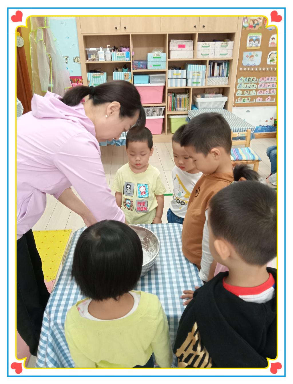 《3-6岁儿童学习与发展指南》中指出:在良好的社会环境及文化的熏陶中,形成基本的认同感和归属感。制作团圆饼的活动不仅能够增强宝贝们的动手能力、创造力和合作能力,同时也能使幼儿产生一种归属感和民族自豪感。