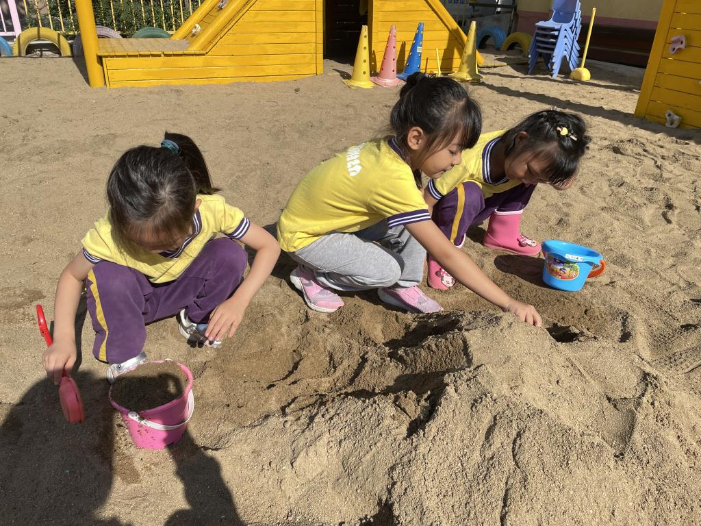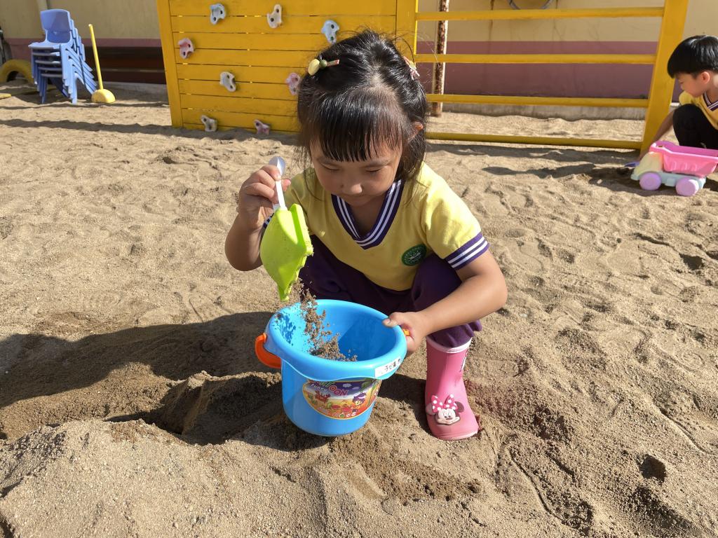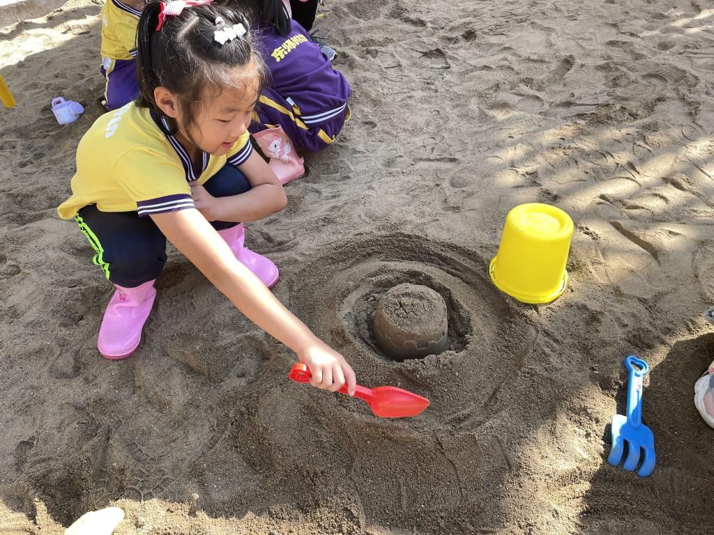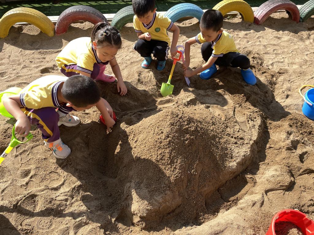在幼儿园的自主游戏中,幼儿对沙池有浓厚的兴趣,玩沙给幼儿带来多方面的发展。在玩沙的时候,幼儿用力拍打沙子或用铲子将沙子铲起,既可以发展孩子的手腕精细动作,熟练肢体协调,也可以控制手部肌肉的动作。这不仅可以促进身体的发展,也促进幼儿大脑的发展。在玩沙的过程中幼儿的创造力得以发展,在探索多种玩法、多种工具使用的过程中,多种想法得以实现。