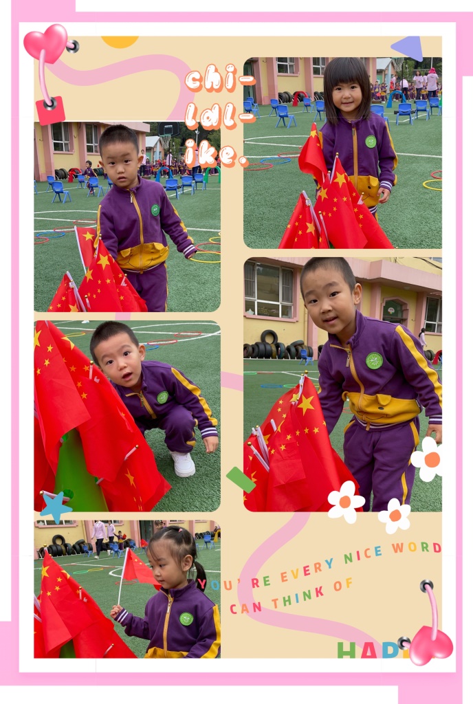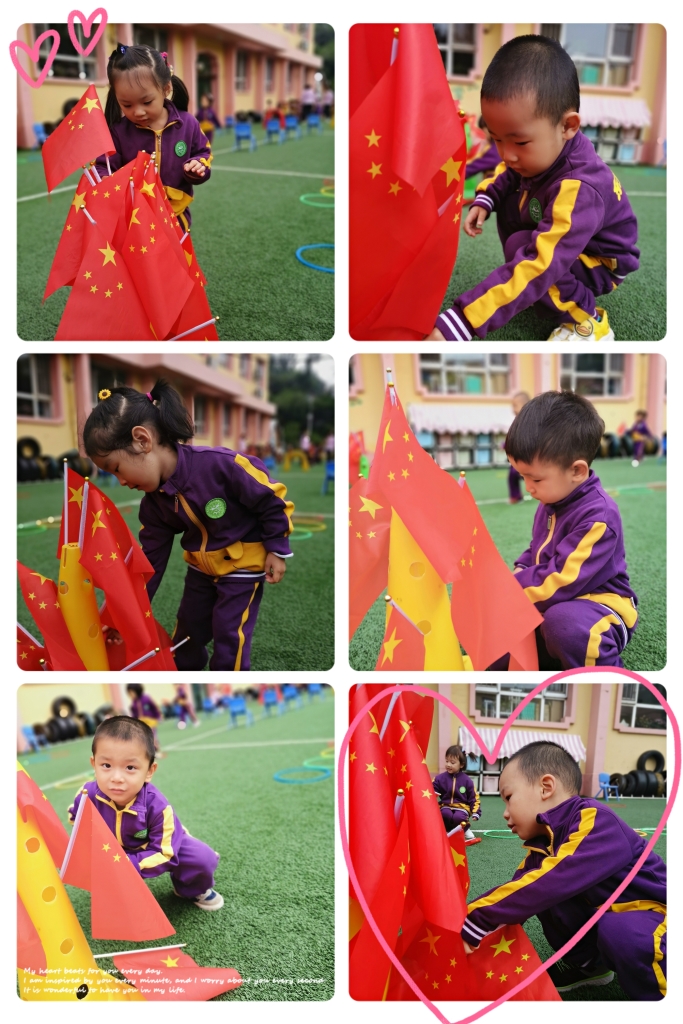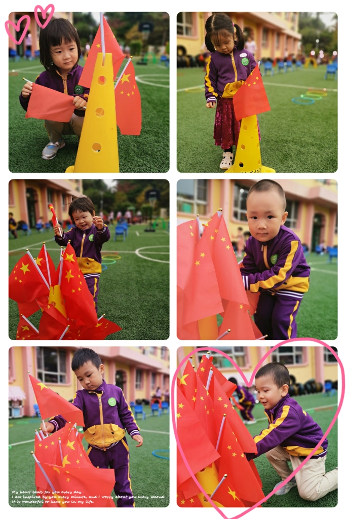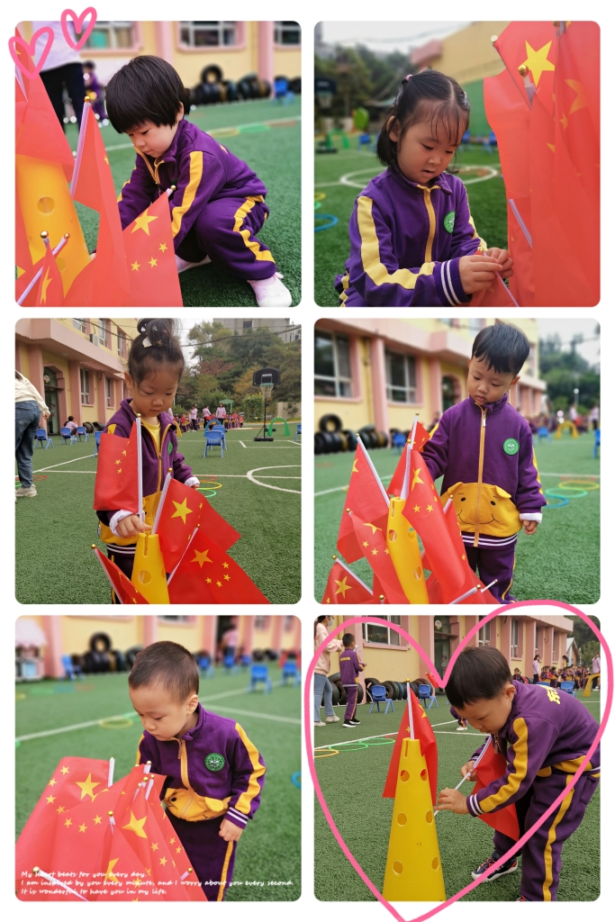 国庆节是一个意义非凡的节日,让小朋友们用自己的方式庆祝了国庆节,更能激发小朋友的民族自豪感。爱国主义精神要从小培养,将热爱祖国的情怀种在小朋友们的心灵中,帮助小朋友形成最初的归属感,。正如歌曲中唱到的:“你画太阳,我画国旗,祖国祖国我们爱你!”