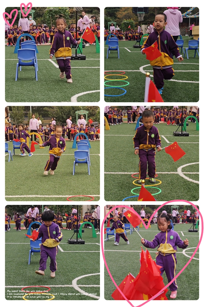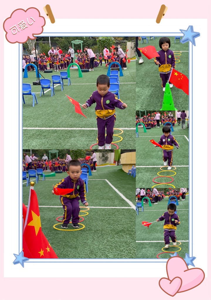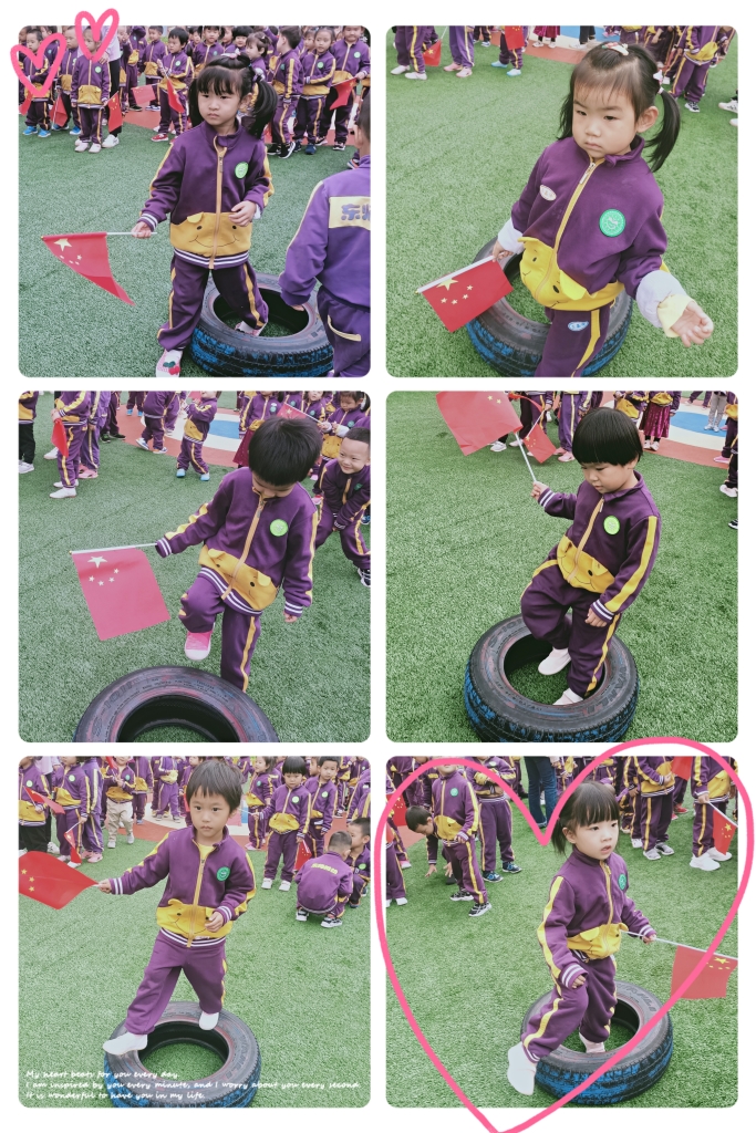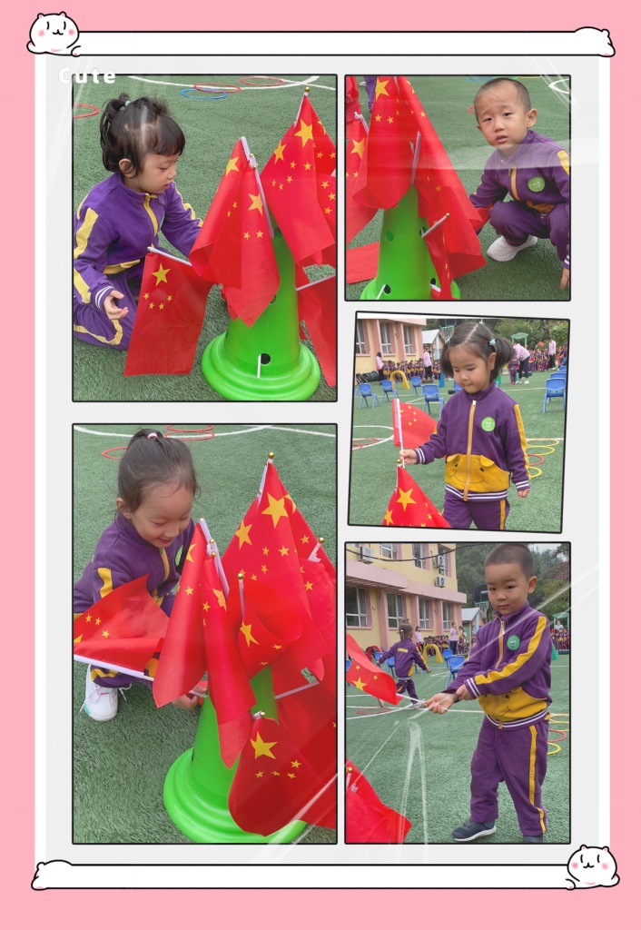 国旗国旗真美丽,五颗金星照大地,我们从小爱祖国,向着国旗敬个礼。美丽的国旗,庄严的国旗,我们要时刻守卫它。苗苗组小朋友争当护旗手,跨过重重阻碍保护国旗。