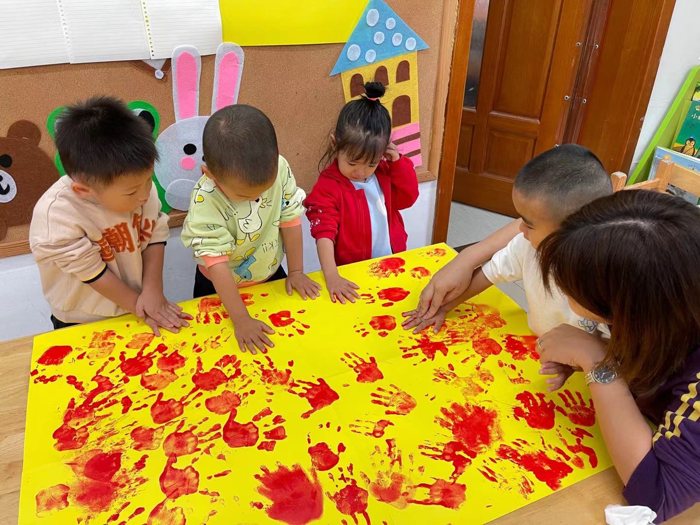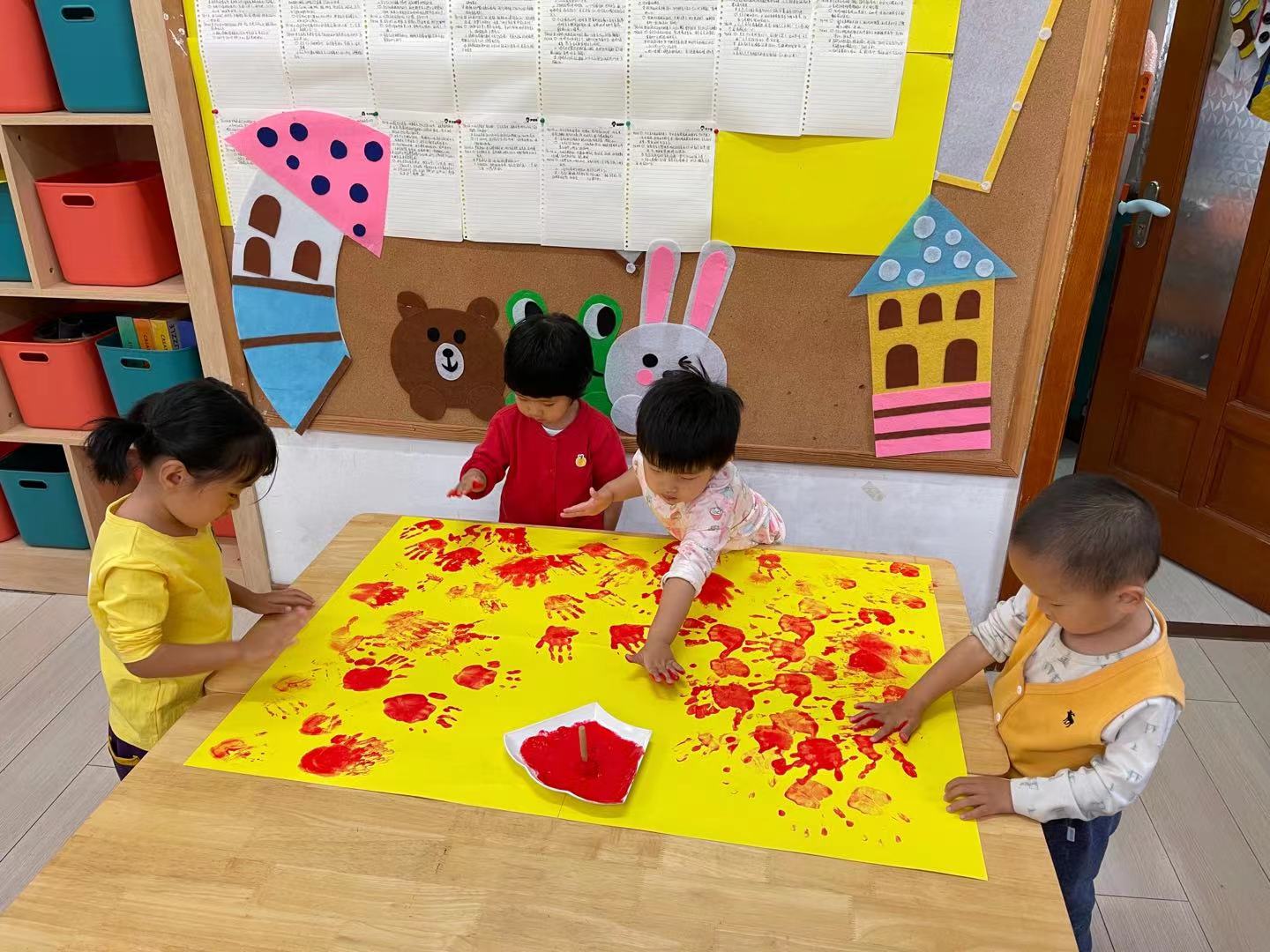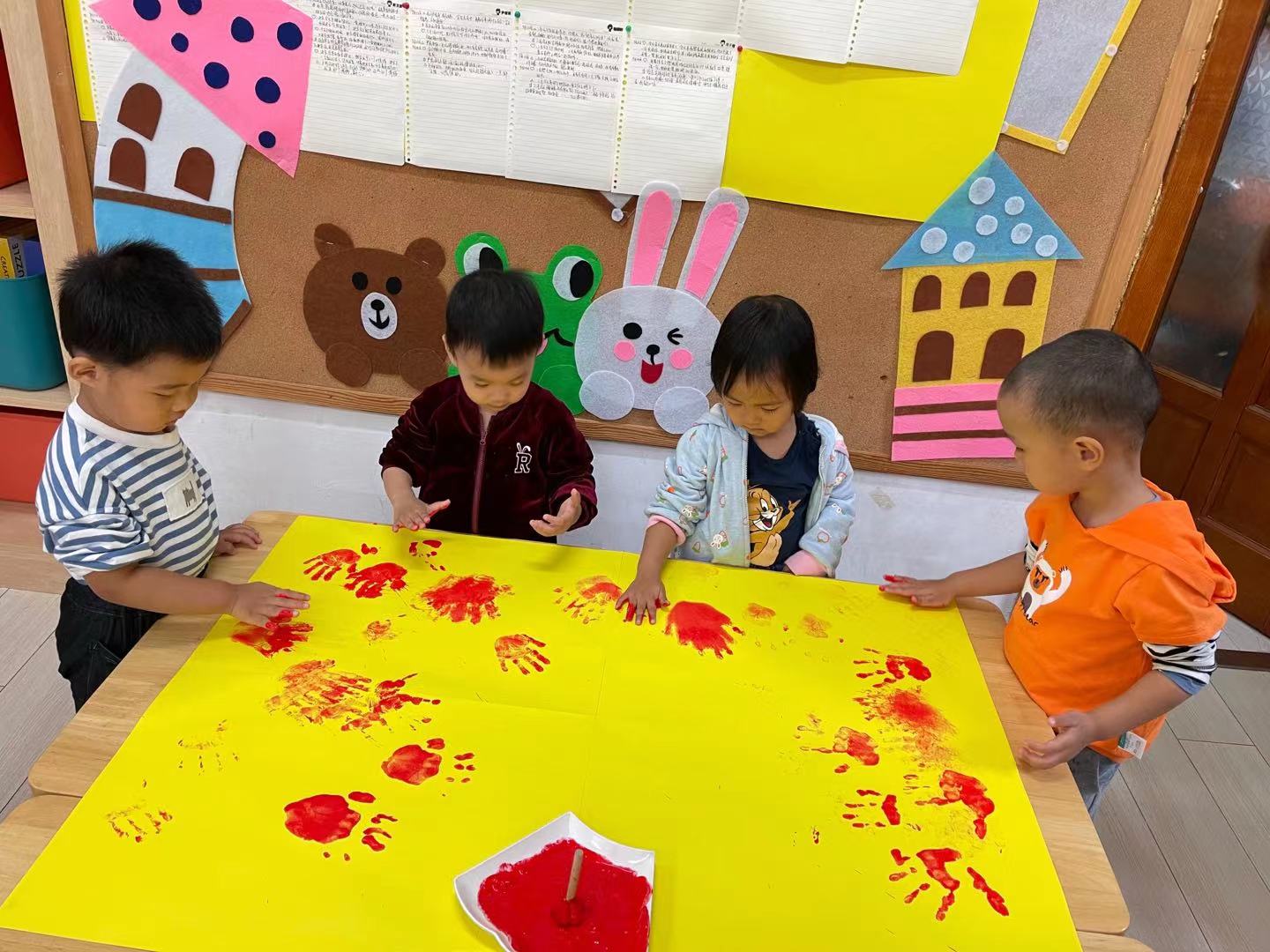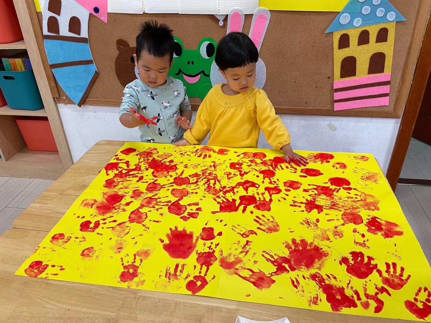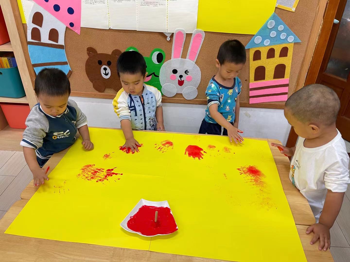 国庆节是祖国妈妈的生日,也是对幼儿进行爱国教育的良好时机,为了让孩子们感受节日的气氛,从小就要培养孩子们的爱国情感。2021年9月30日这一天老师与小朋友一起庆祝节日,充分感受举国欢庆的节日氛围,体验国庆假期的快乐。这是小可爱们第一次在幼儿园与老师,小朋友们一起庆祝节日,宝贝们正在用手掌印画的方式来庆祝国庆节的到来。