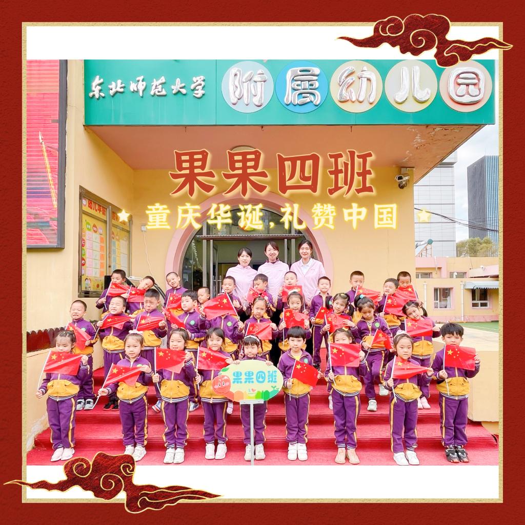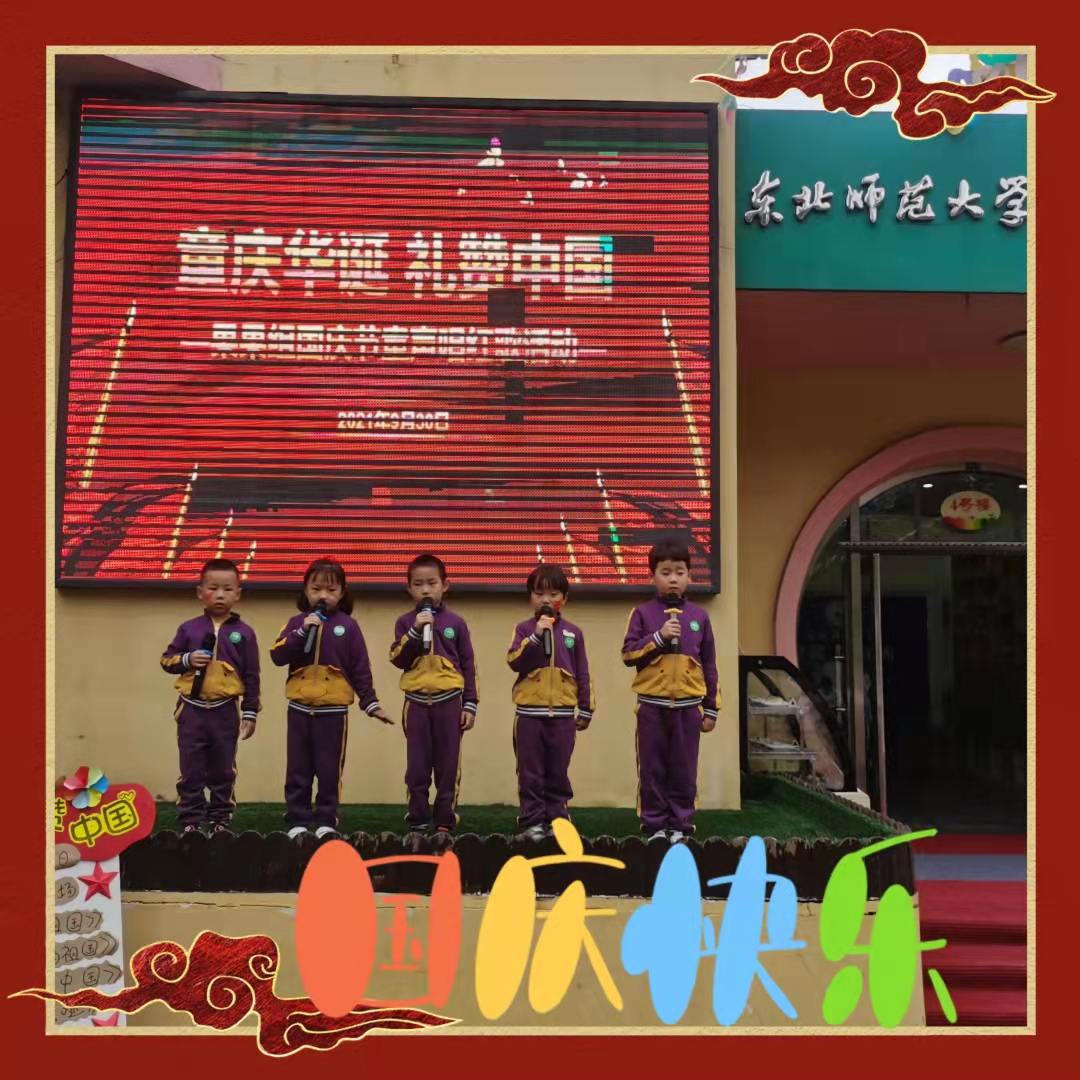 72载筚路蓝缕,风雨兼程;72载春华秋实,砥砺奋进。在举国欢度国庆节的振奋时刻,为进一步贯彻《中国儿童发展纲要(2021—2030)》《幼儿园教育指导纲要》《3-6岁儿童学习与发展指南》等国家文件精神,培养孩子们爱祖国、爱家乡、爱人民的情感,引领孩子们润育童心、濡养国格,在孩子们渐进丰盈的精神世界中赋满中国红、中国心。同时陪伴孩子们更沉浸地感受国庆佳节的喜庆氛围,在新中国成立72周年来临之际,东师附幼果果组专门酝酿、精心设计了“童庆华诞,礼赞祖国”国庆节主题歌咏庆祝活动,共同祝愿祖国母亲青春鼎盛、芳华锦绣。