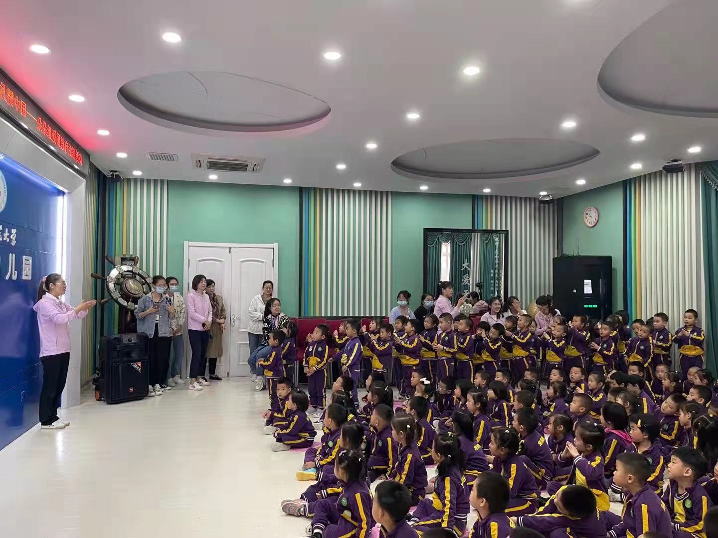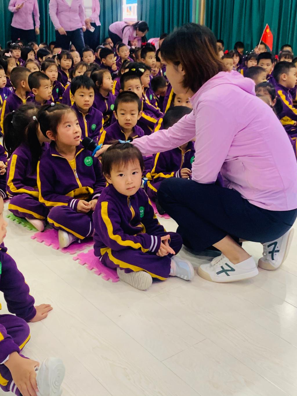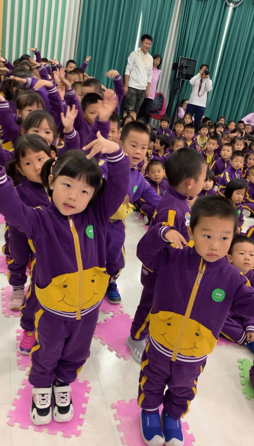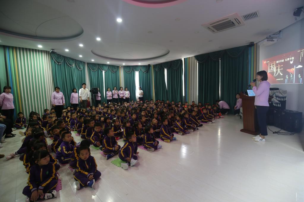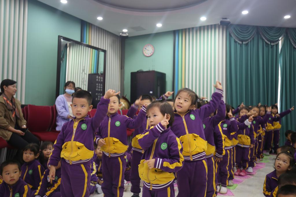 拉歌活动开始啦,小朵朵们精神饱满,歌声嘹亮,激情昂扬,纵情歌唱。有“五星红旗飘扬蓝天上,自由的鸟儿飞到那远方,我要好好读书天天向上,实现心中小小的梦想”的《中国么么哒》;有“中华大家庭、四海皆同心、学好中国字、做好中国人”的《中国字 中国人》;有“我们是祖国的花朵,阳光下尽情唱着歌,看我们幸福的生活,像花儿五彩的颜色”的《祖国的花朵》;有“祖国妈妈是我出生后的摇篮,祖国妈妈是我听到的第一支摇篮曲,我们都深深的爱着祖国妈妈,她有一个响亮的名字叫中国”的《我的国家》;有“有个国家她很伟大,这里的人都把幸福脸上挂,有个国家她很伟大,五十六个民族团结是一家”的名字叫中国;有“人民生活幸福美满;祖国处处日新月异;祖国的花朵在阳光的照耀下,茁壮成长”的《党是太阳我是花》。小朵朵们用童声深情演绎着爱国歌曲,用童心赞美着祖国的欣欣向荣,用美妙的舞姿尽情展现着多姿多彩的快乐生活。