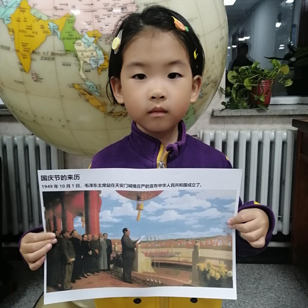 每个小朋友都回家一起和爸爸妈妈收集了国庆节的相关资料,并和大家一起分享了国庆节的由来。他们更加深刻的了解了10月1日是祖国妈妈的生日,在认识了五星红旗的基础上,明白了其中每颗星的象征和含义。