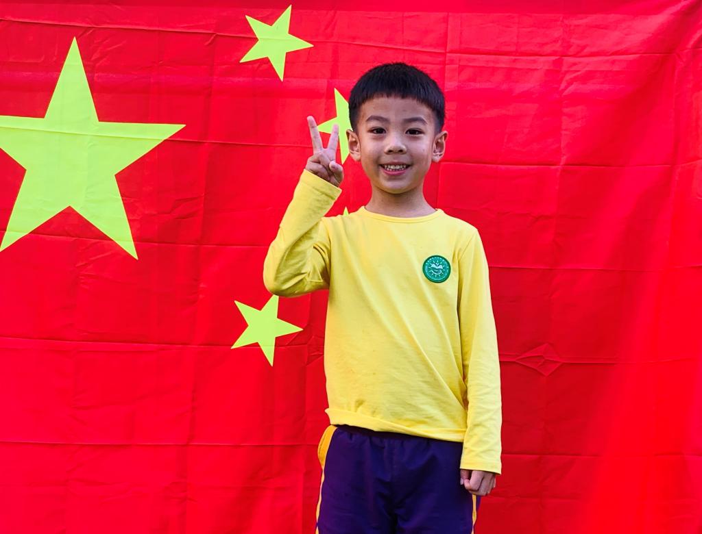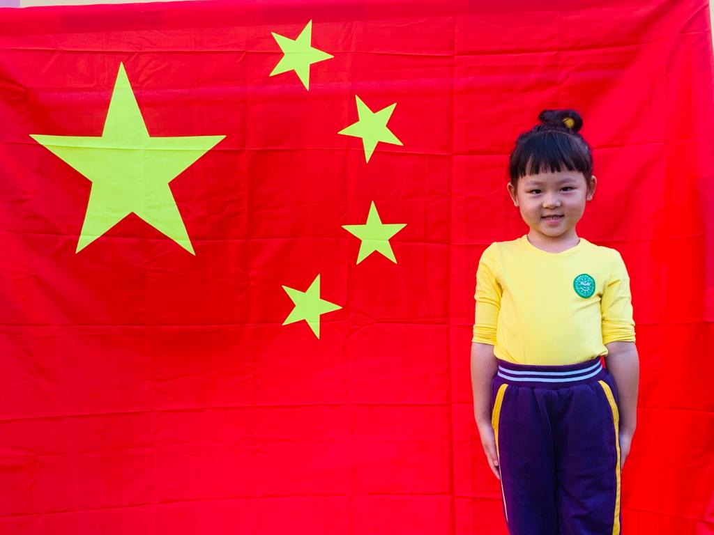 在本周升旗仪式时,小朋友们庄严的国歌声中,看着五星红旗冉冉升起。一起齐唱《国歌》,为祖国妈妈送上生日的祝福。