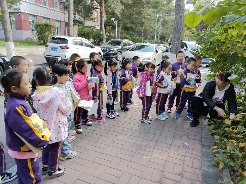 瞧!落叶飞舞,清风轻拂,树叶伴随着风声沙沙作响,老师和小朋友们一边走一边看,孩子们不时蹲下来闻一闻、摸一摸,孩子的小脚踏在落叶上发出沙沙的响声,这样的情境带来无限的乐趣。