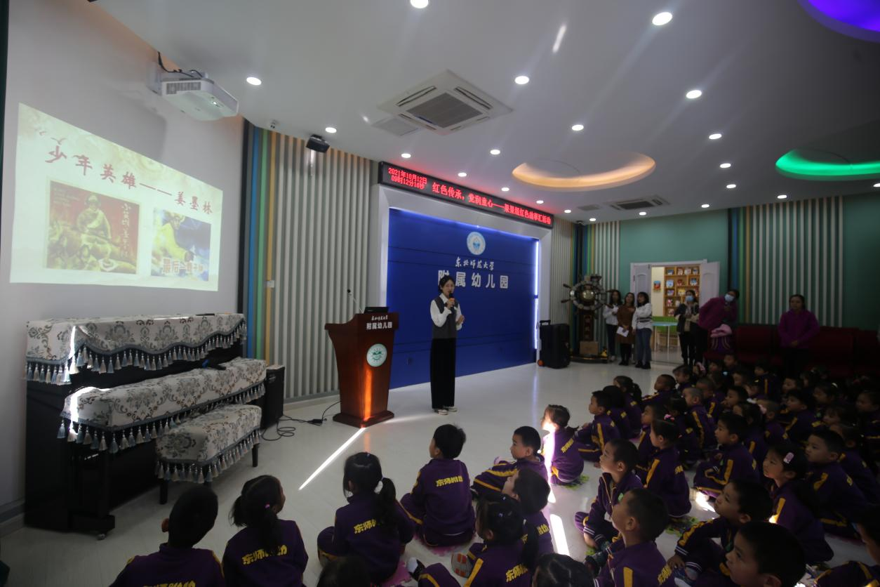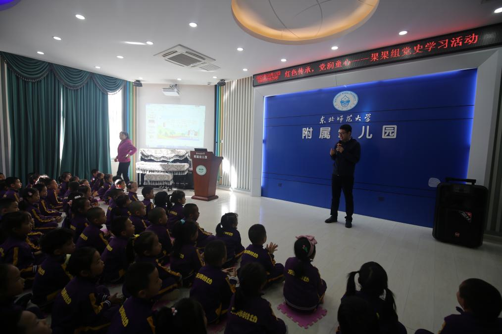 东北师范大学的思想政治教育学科处于全国前列,是国家“双一流”重点建设学科。我园作为大学附属幼儿园,一直以来都深入贯彻学校思政教育思想,重视立德树人,注重将党史学习教育融入小朋友们的保教活动之中。通过本次宣讲活动,果果组小朋友们一起回顾了党的光辉历程,深切感受革命先烈艰苦卓绝的历史经历和不屈不挠的革命精神。既培养了小朋友们热爱读书,乐于表达,更激发了小朋友们爱国主义情感和民族自豪感。今后,果果组也将不断开展形式多样、丰富多彩的红色教育活动,以党建引领助力保教工作,让红色精神浸润童心。