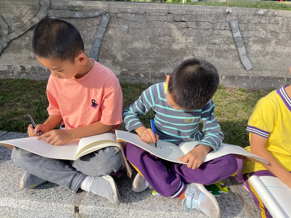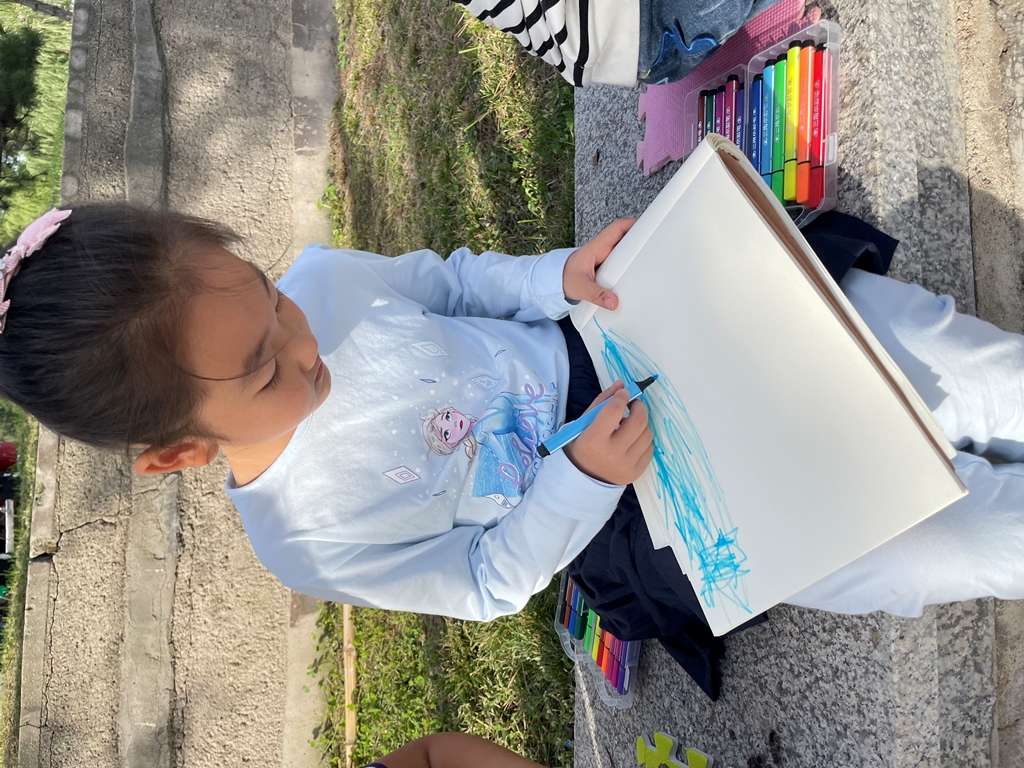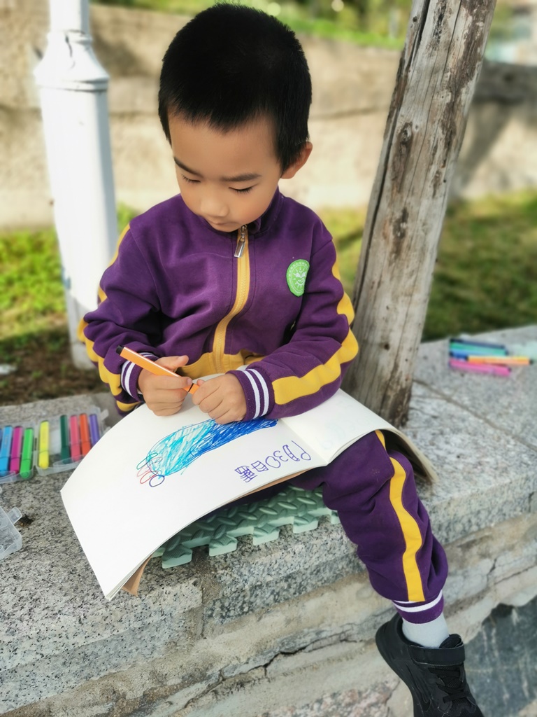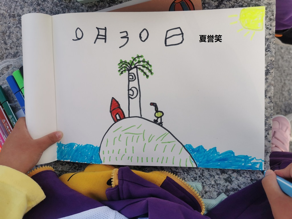 孩子们对绘画的浓厚兴趣,对大自然也充满了好奇,还运用了丰富想象,表达了各种“秋天中的美”。绘画采风的过程也是连续的过程,每一次的绘画,都会有变化,从最初的大场景到第二次细致的观察,秋天每一点的变化都在孩子们畅游东师的过程中,看在眼中,落在笔上,记在心里。
