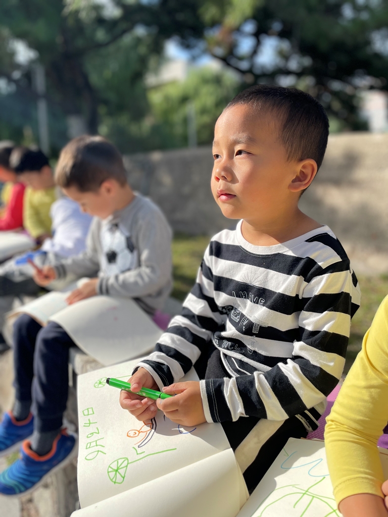 让我们背起小画板,一起去师大采风吧!秉承东师附幼“ 有兴趣,能专注,喜探究,愿合作”的学风,伴随着秋天的来临和主题活动《了不起的中国》的开展,“丰收的秋”激发了孩子们了解秋天的渴望。带着这些问题,我们走进大学校园,进行秋游写生绘画采风。