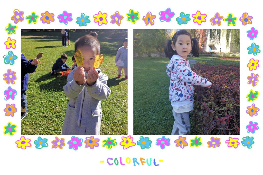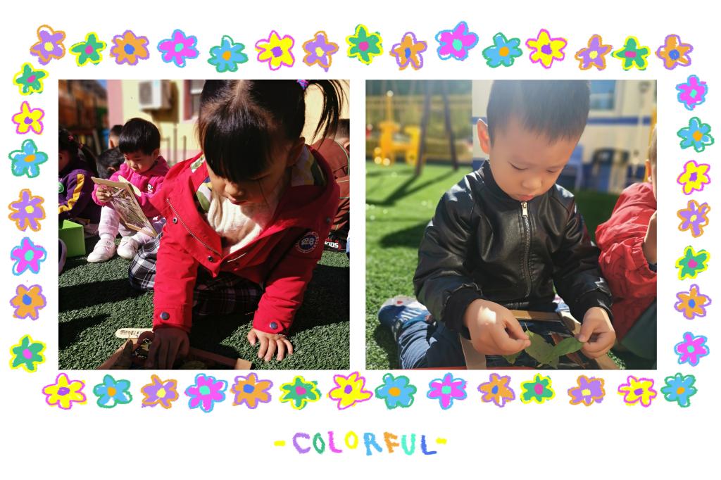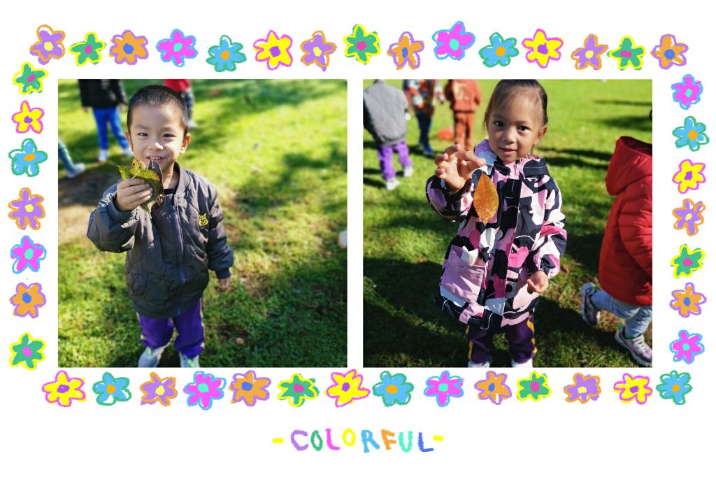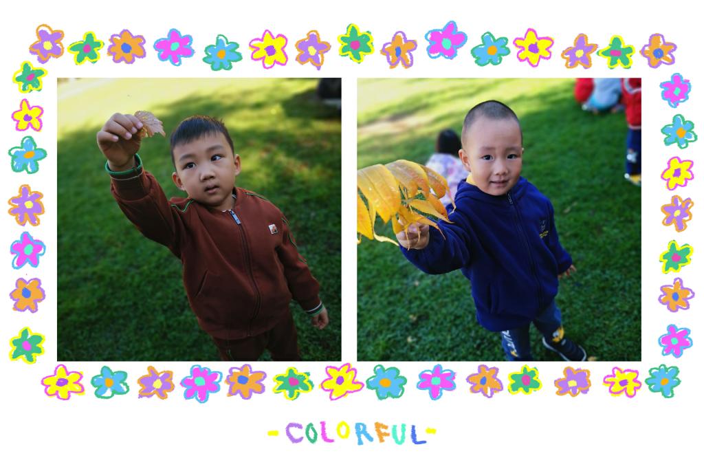 他们时而追逐、时而捡树叶,时而几个好朋友头碰头轻声交流:“我捡的树叶是红色的”“我捡到的是黄色的”“这片树叶好大呀”...宝贝们像一群小鸟飞在草地上,捡起各种各样的落叶,展示给老师和小伙伴们看,每位宝贝都参与其中,无比的开心。