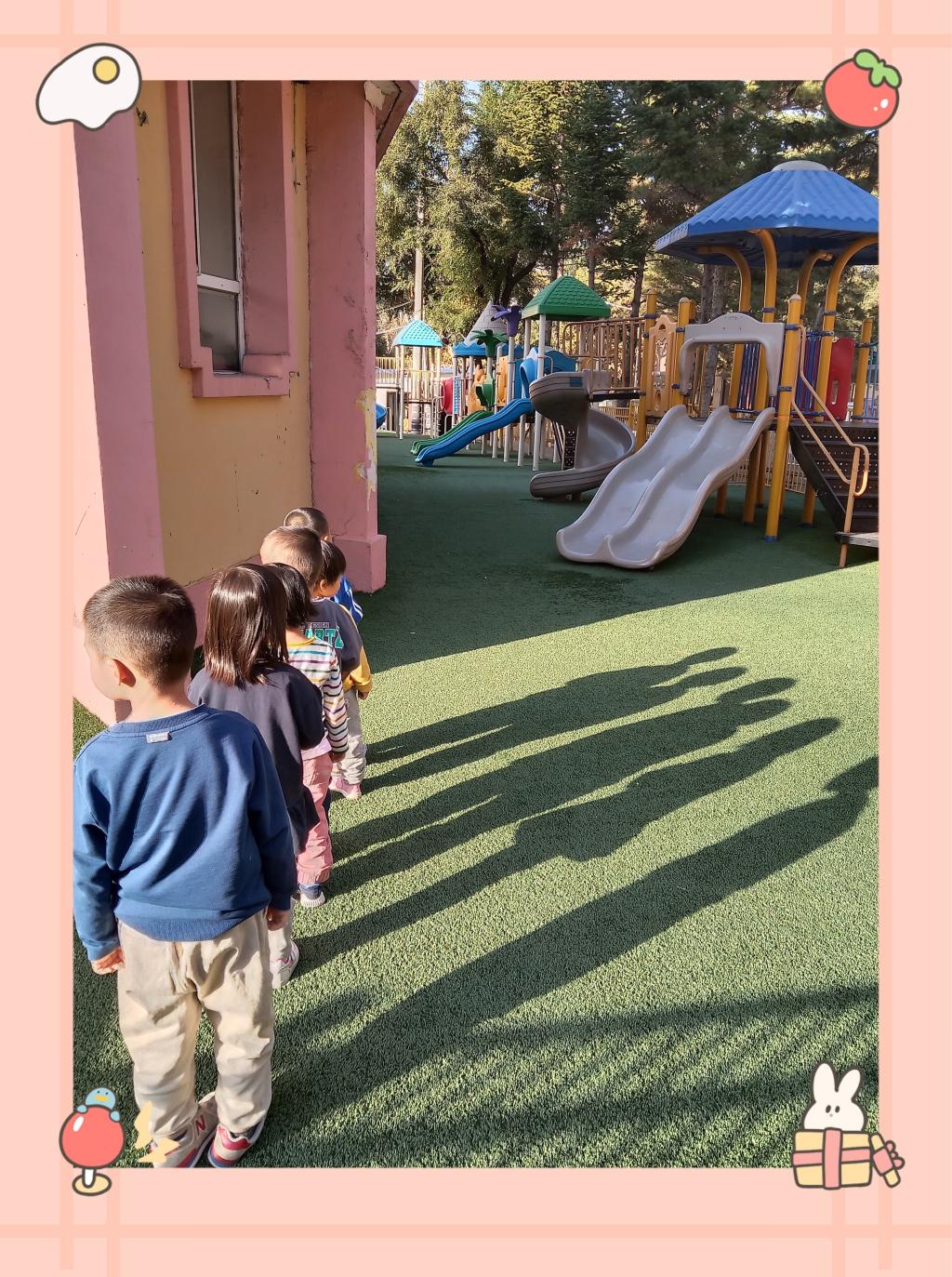 小朋友们选择一个位置,分别在早晨,中午和傍晚看看我们的影子有什么变化?
