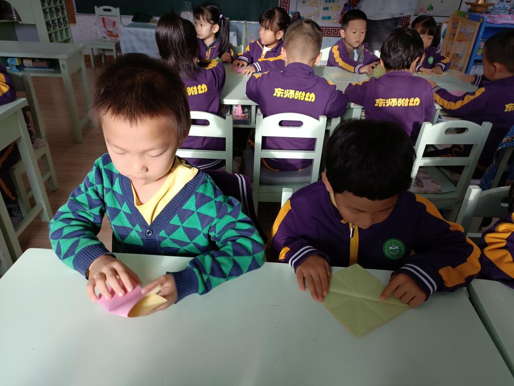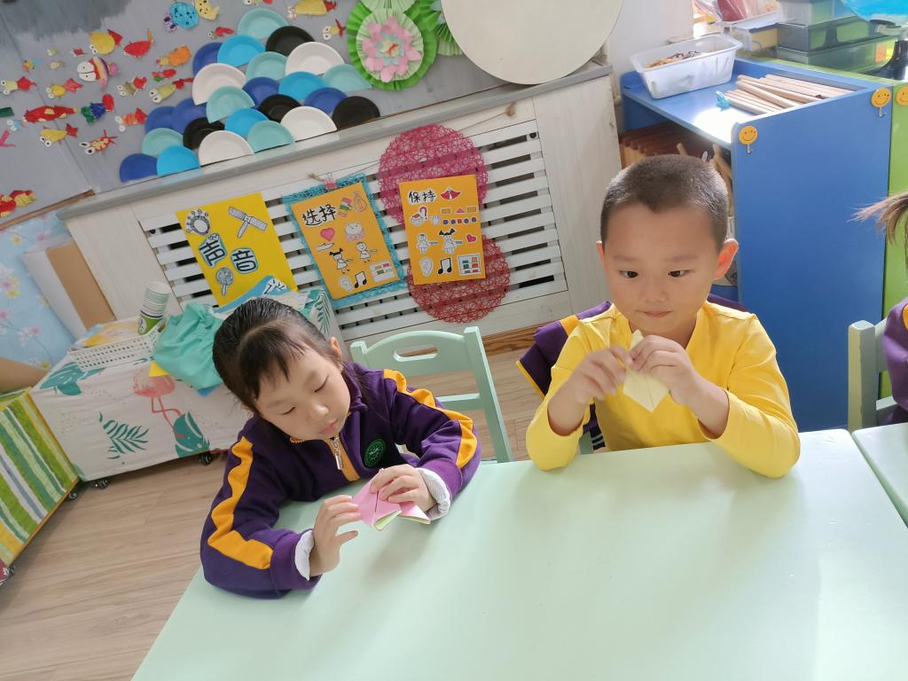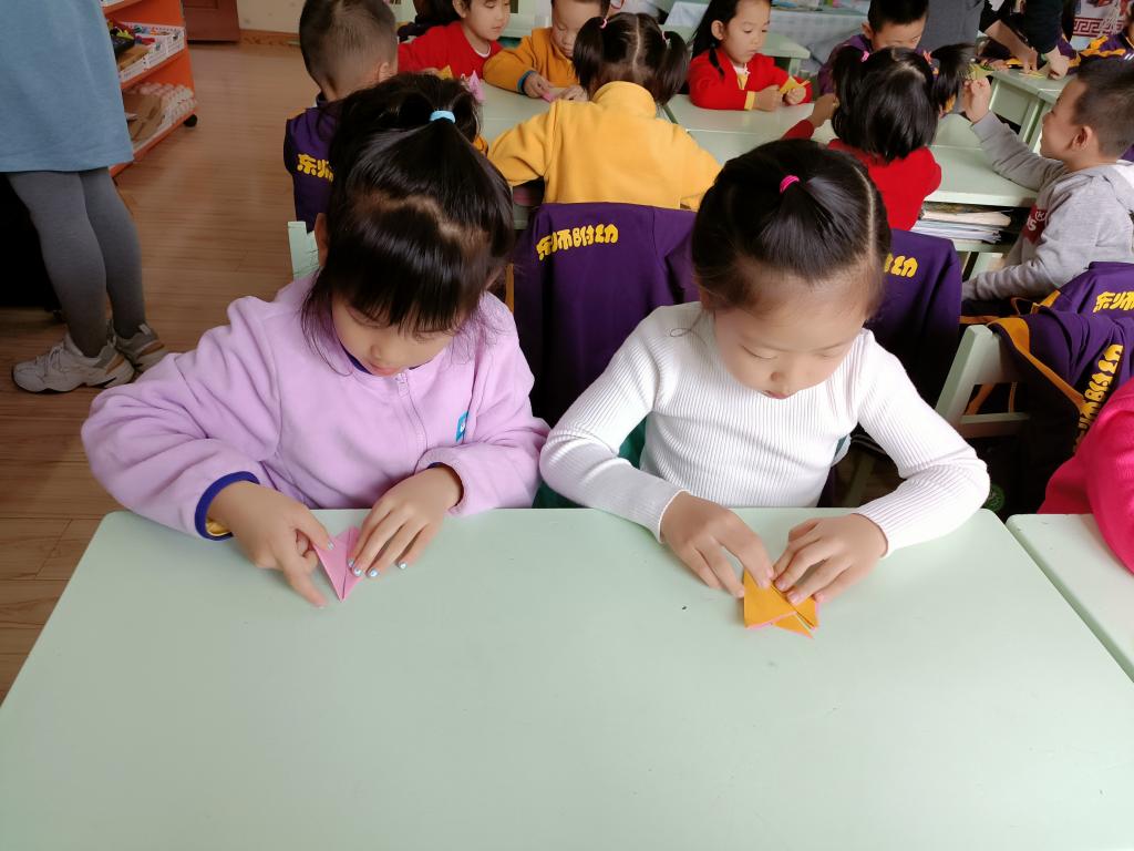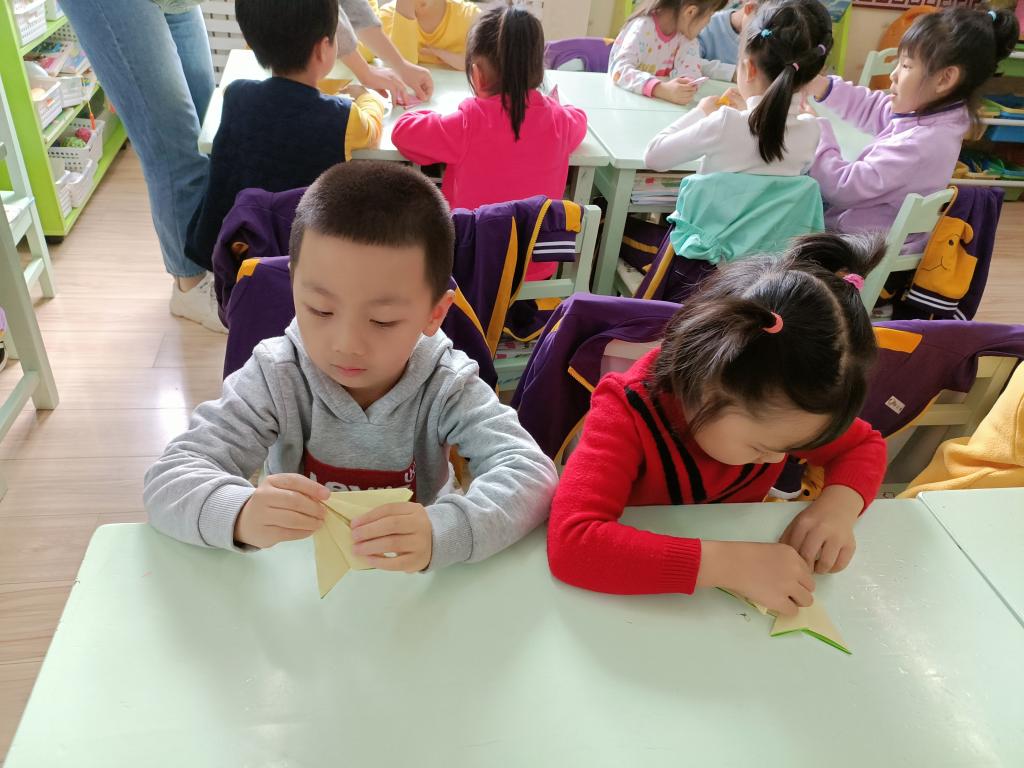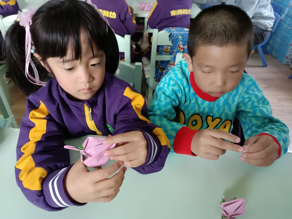 百善孝为先,孝是尊敬,孝是热爱,让孩子们从小就学会尊重别人,尊敬长辈。我们做点什么来表达对家中老人的祝福呢?一起动动灵巧的小手,来折一个寿桃吧。认真专注的样子,把对爷爷奶奶、姥姥姥爷的祝福之情都投注在手中的折纸作品中。
