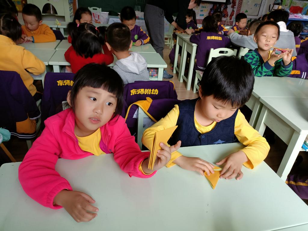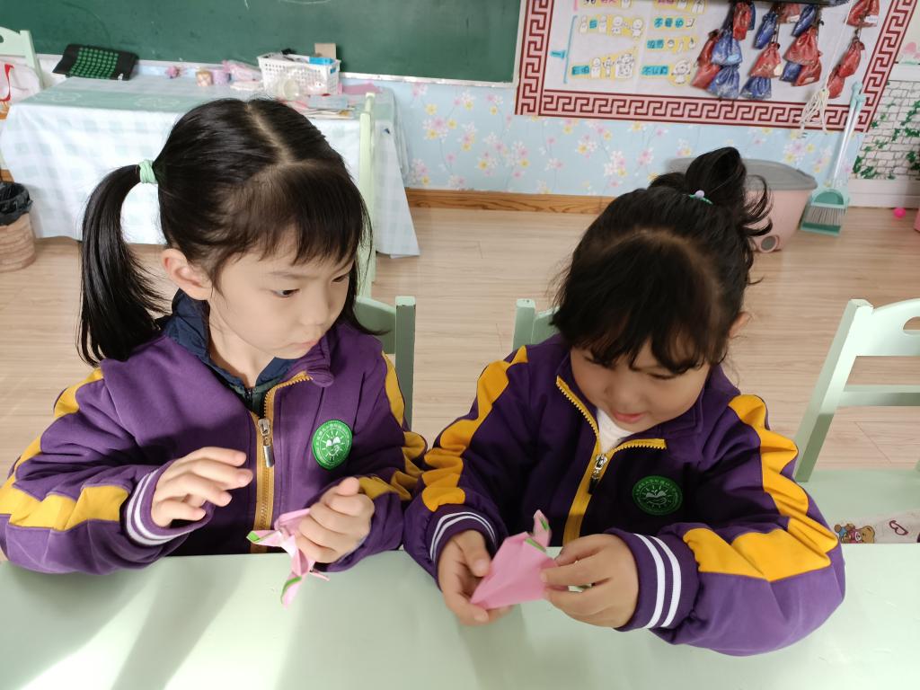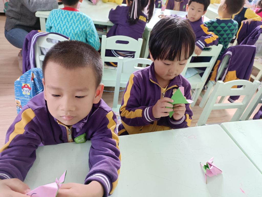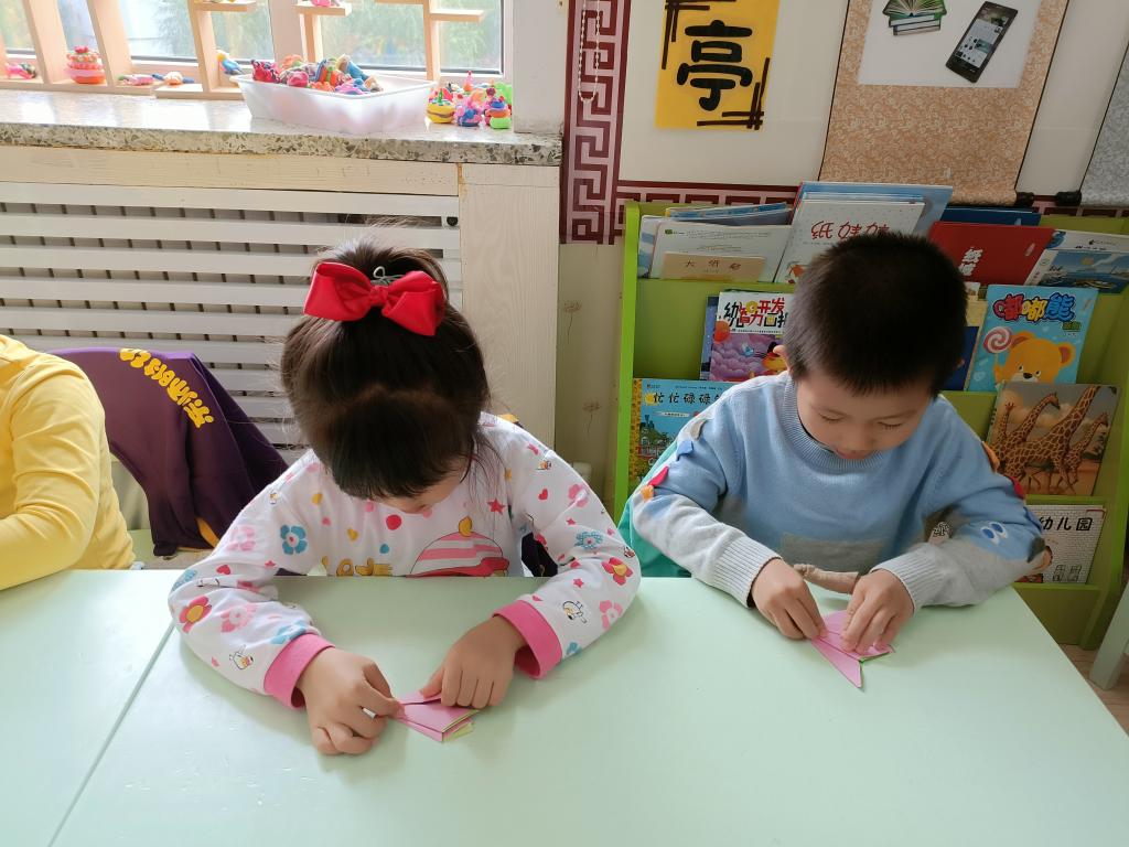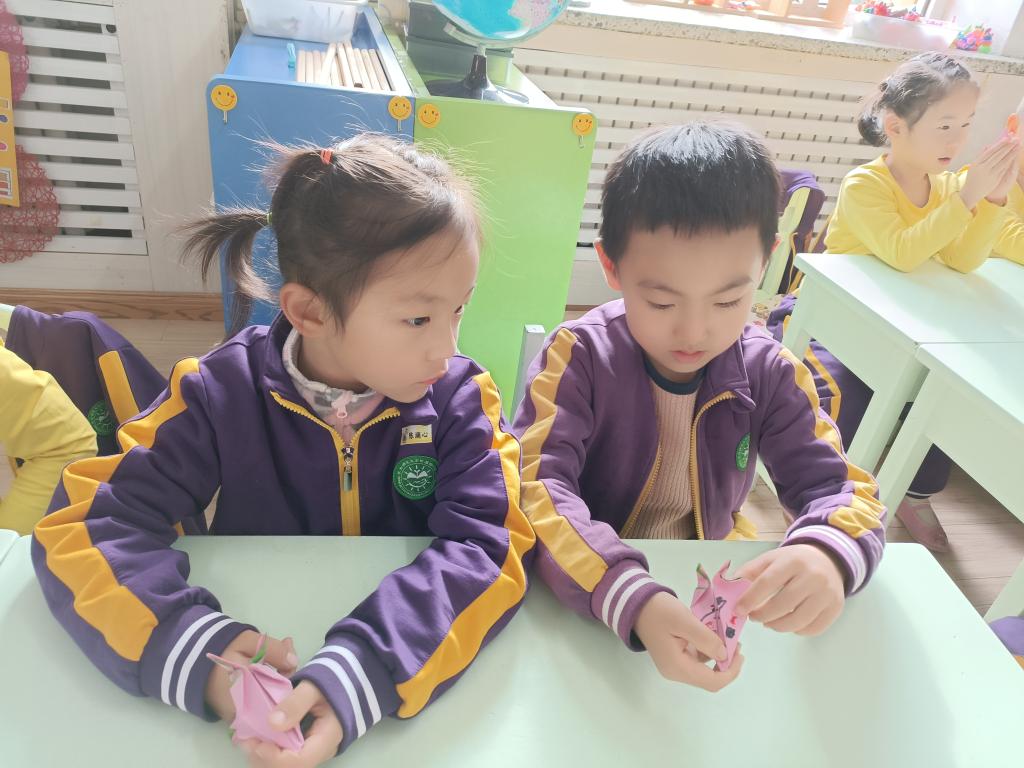 百善孝为先,孝是尊敬,孝是热爱,让孩子们从小就学会尊重别人,尊敬长辈。我们做点什么来表达对家中老人的祝福呢?一起动动灵巧的小手,来折一个寿桃吧。认真专注的样子,把对爷爷奶奶、姥姥姥爷的祝福之情都投注在手中的折纸作品中。