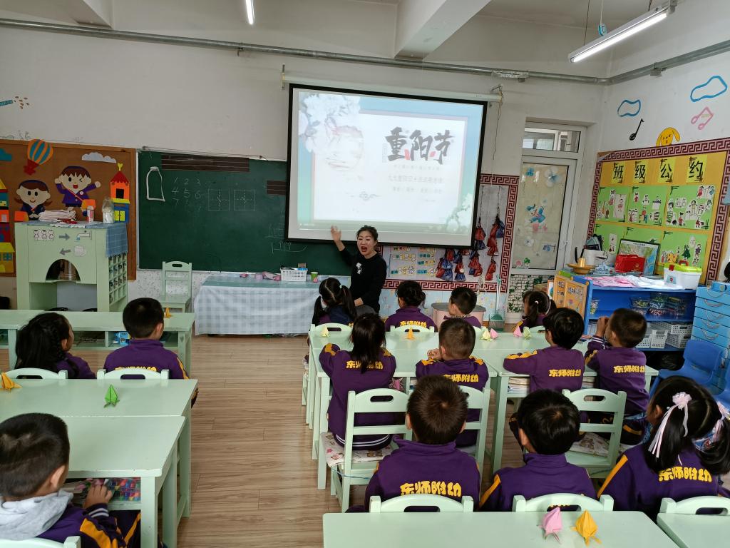 小朋友在老师的带领下了解重阳节的由来和习俗,没有大地母亲整整一个春天和夏天的耕耘,就没有秋天的五谷丰登;同样,没有父母长辈的付出,就没有我们每一天幸福美好的生活。孩子们深刻理解了敬老的内涵,也懂得要把尊老孝亲的中华民族传统美德延续!