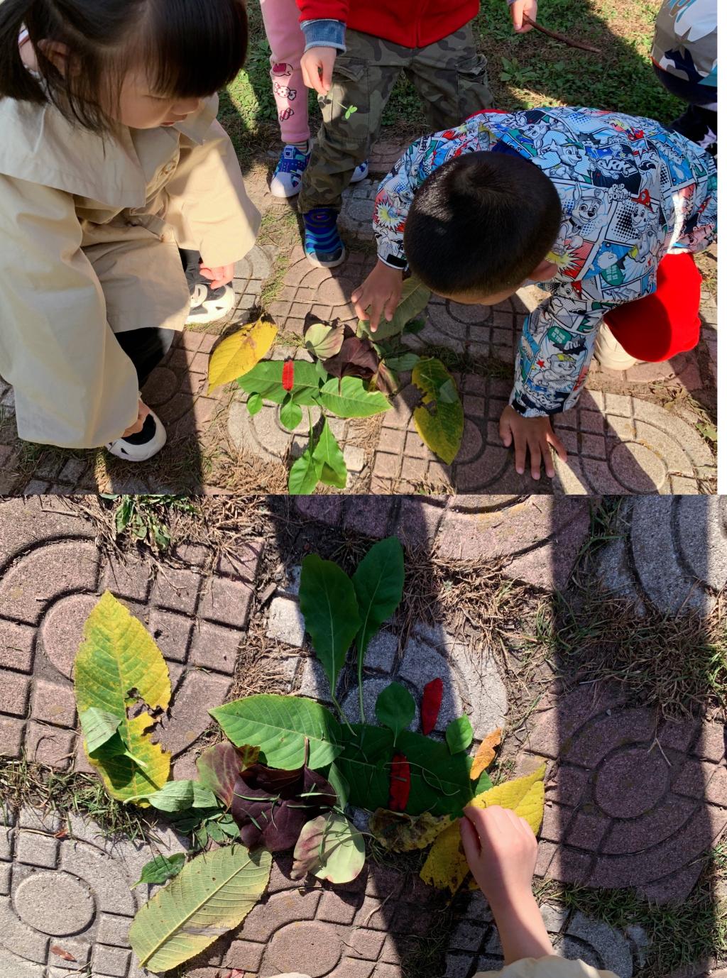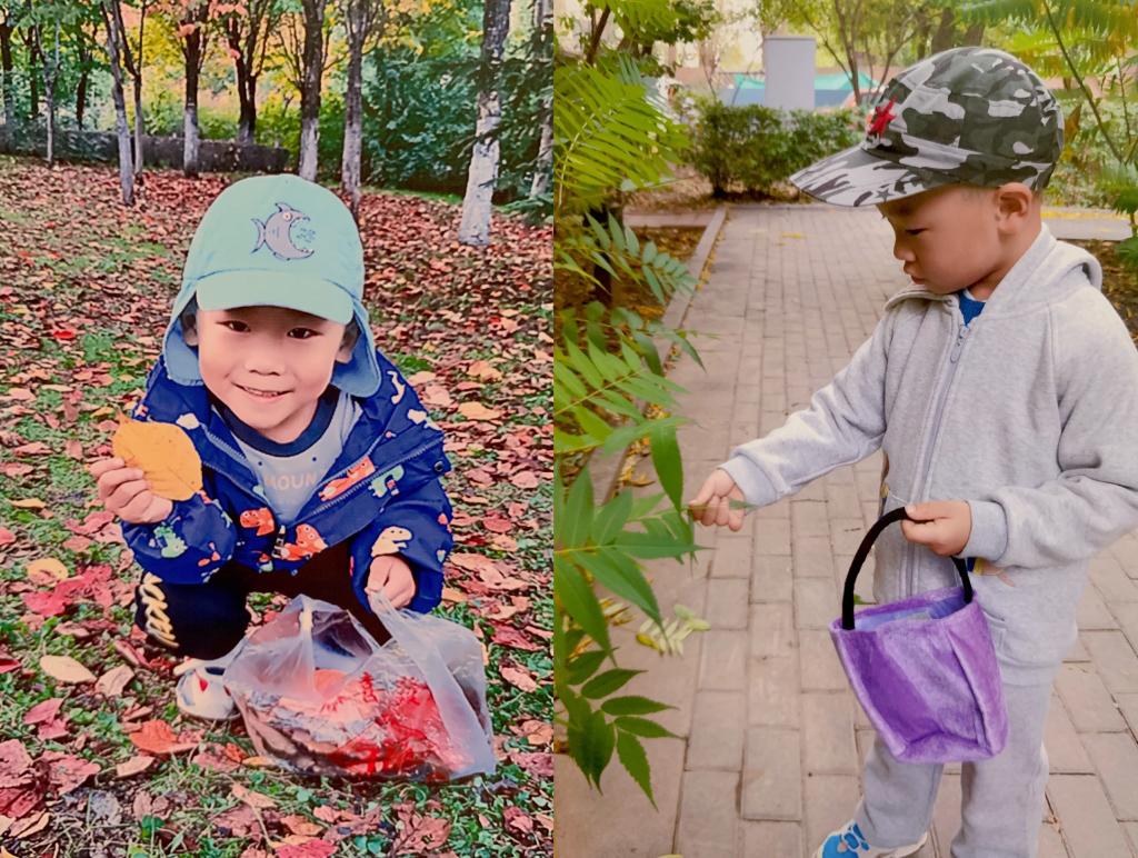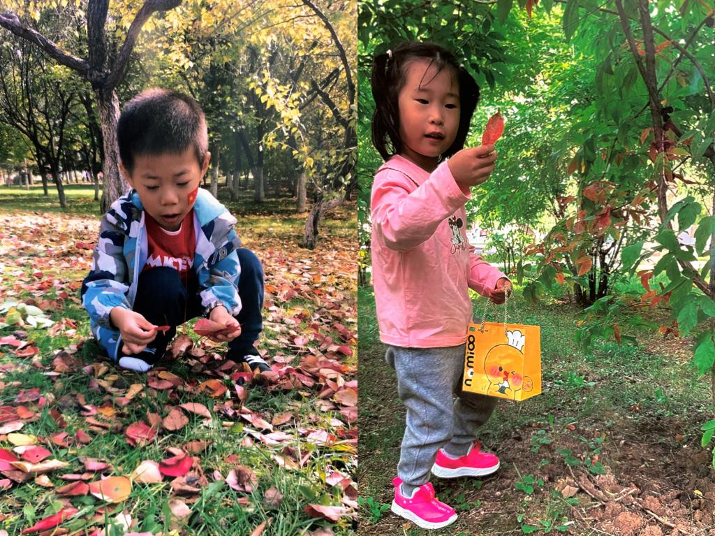 宝贝们早已按捺不住内心的兴奋与喜悦,纷纷开始弯腰、蹲下,拾起一片片落叶......