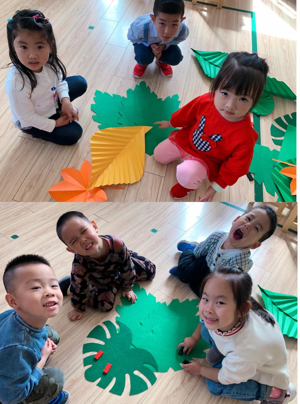 一片片落叶拨动着孩子们探索的欲望,秋叶飘落的动感与幼儿跳跃的心灵天然契合。丰富多彩的叶子给孩子们提供了探索、发现、表达的广阔空间。