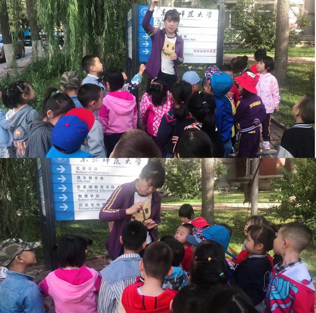 也像神秘的小精灵”孩子们一边唱着歌,一边在东北师大校园里寻找着我们的好朋友叶子先生。
