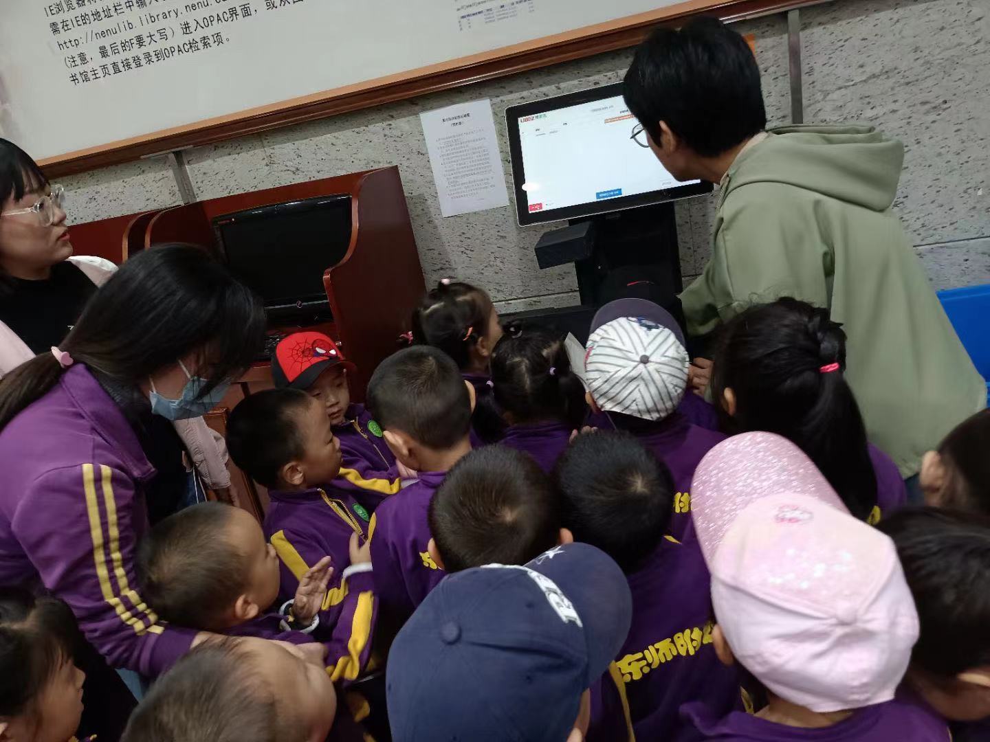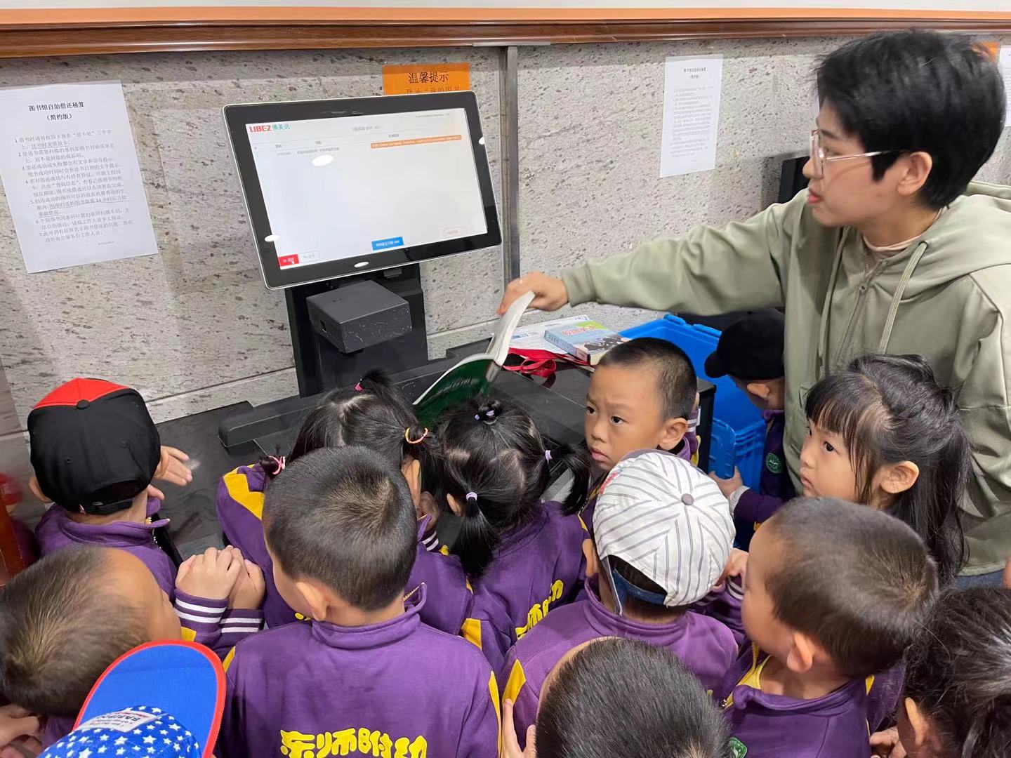 宝贝们在参观中学习到了师大图书馆中的书籍是如何分类的,书籍上的色标有什么作用,如果想借阅或者归还一本书籍需要怎样做……