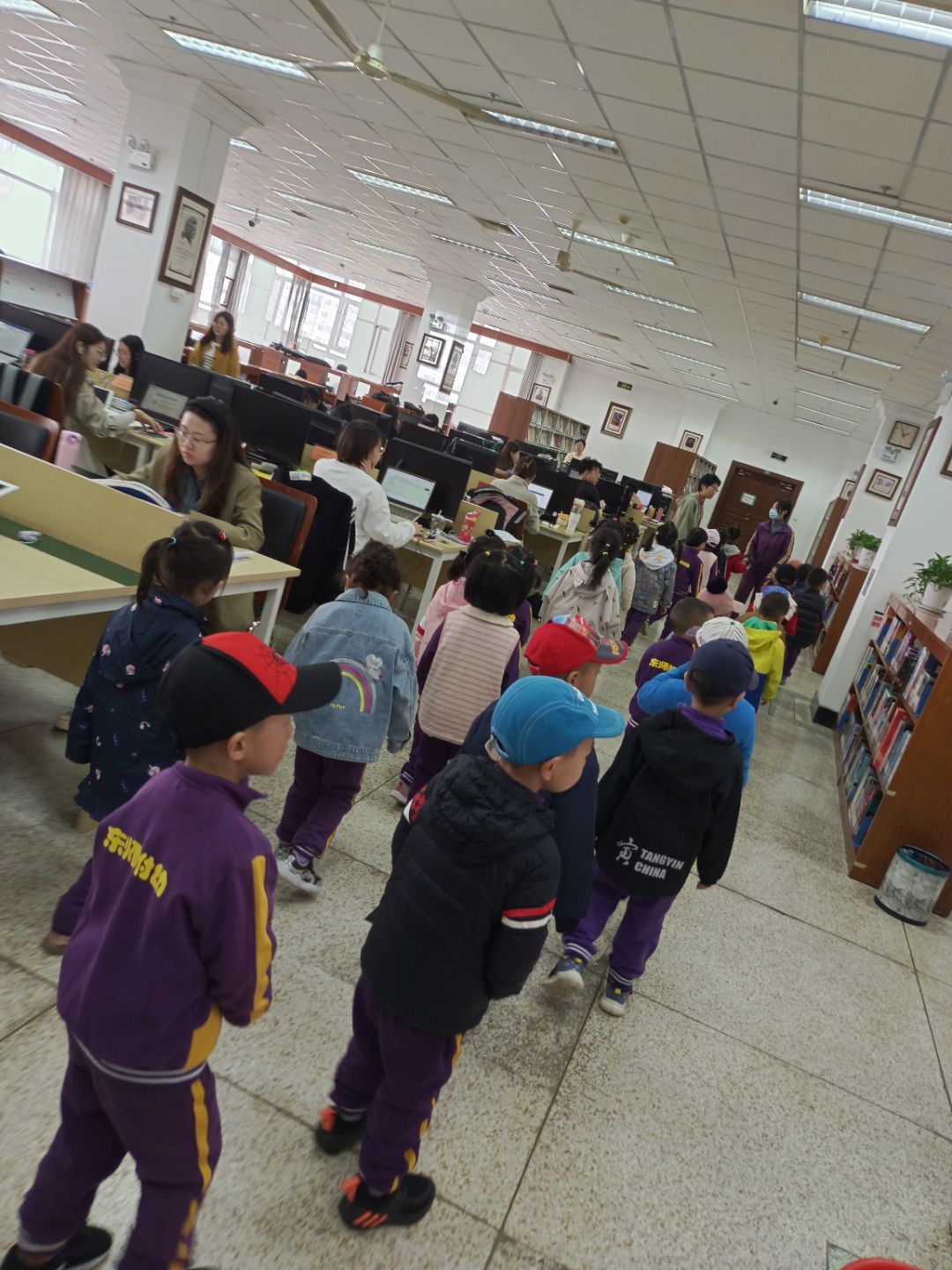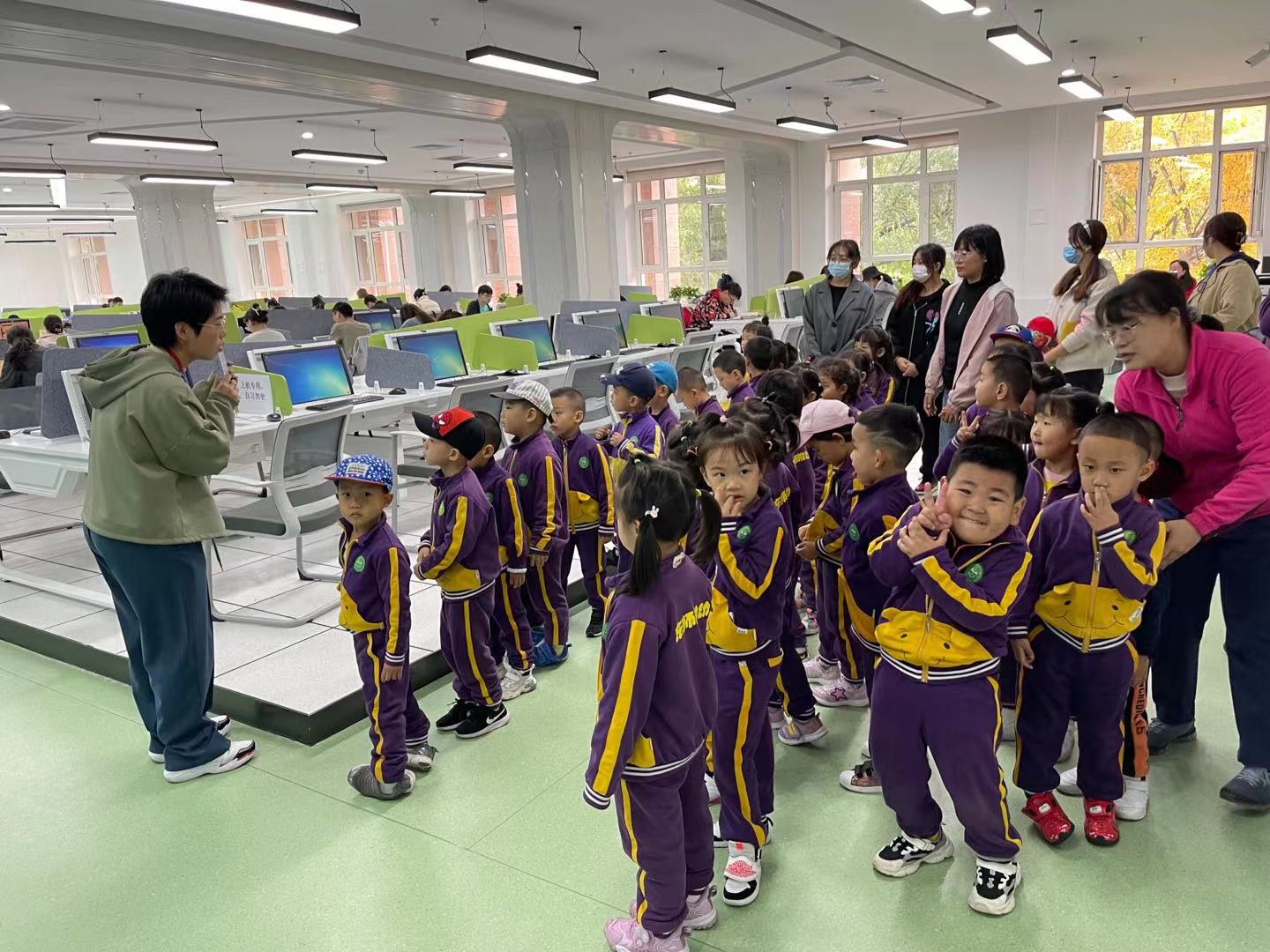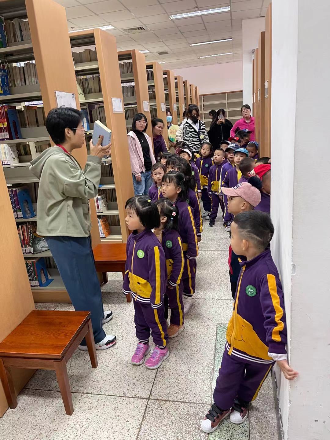 宝贝们整装待发,我们踏着轻快的步伐,排着整齐的队伍来到了图书馆,开启了期待已久的参观之旅。