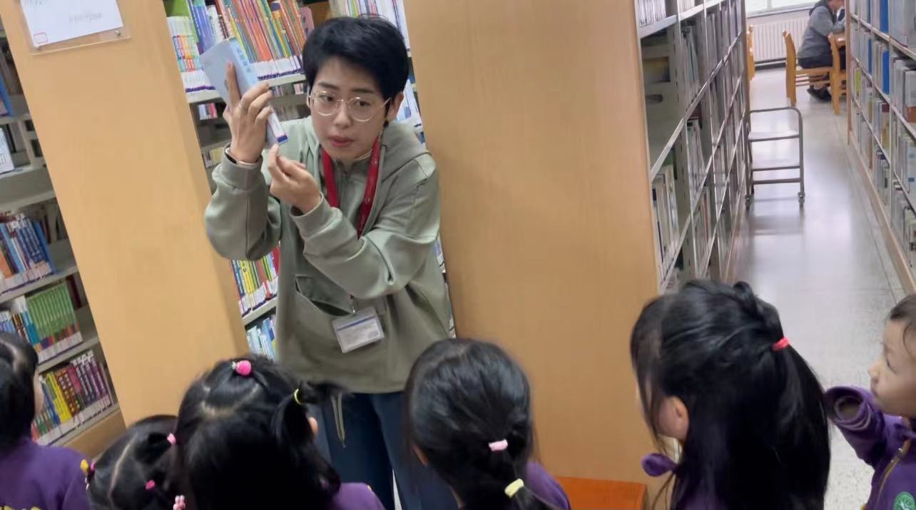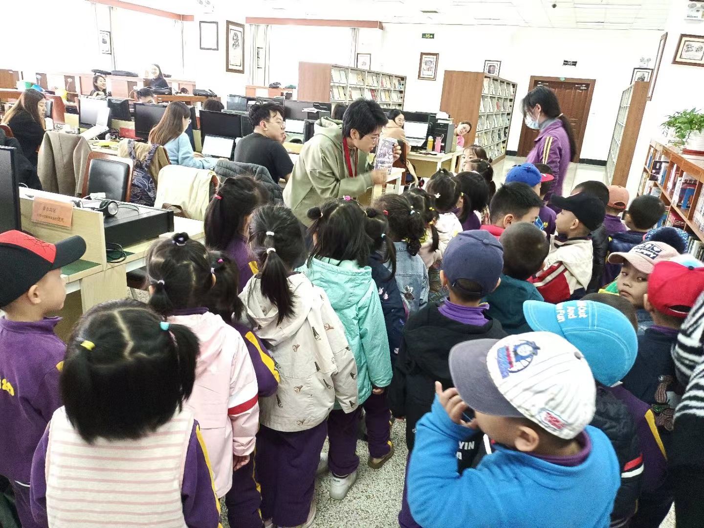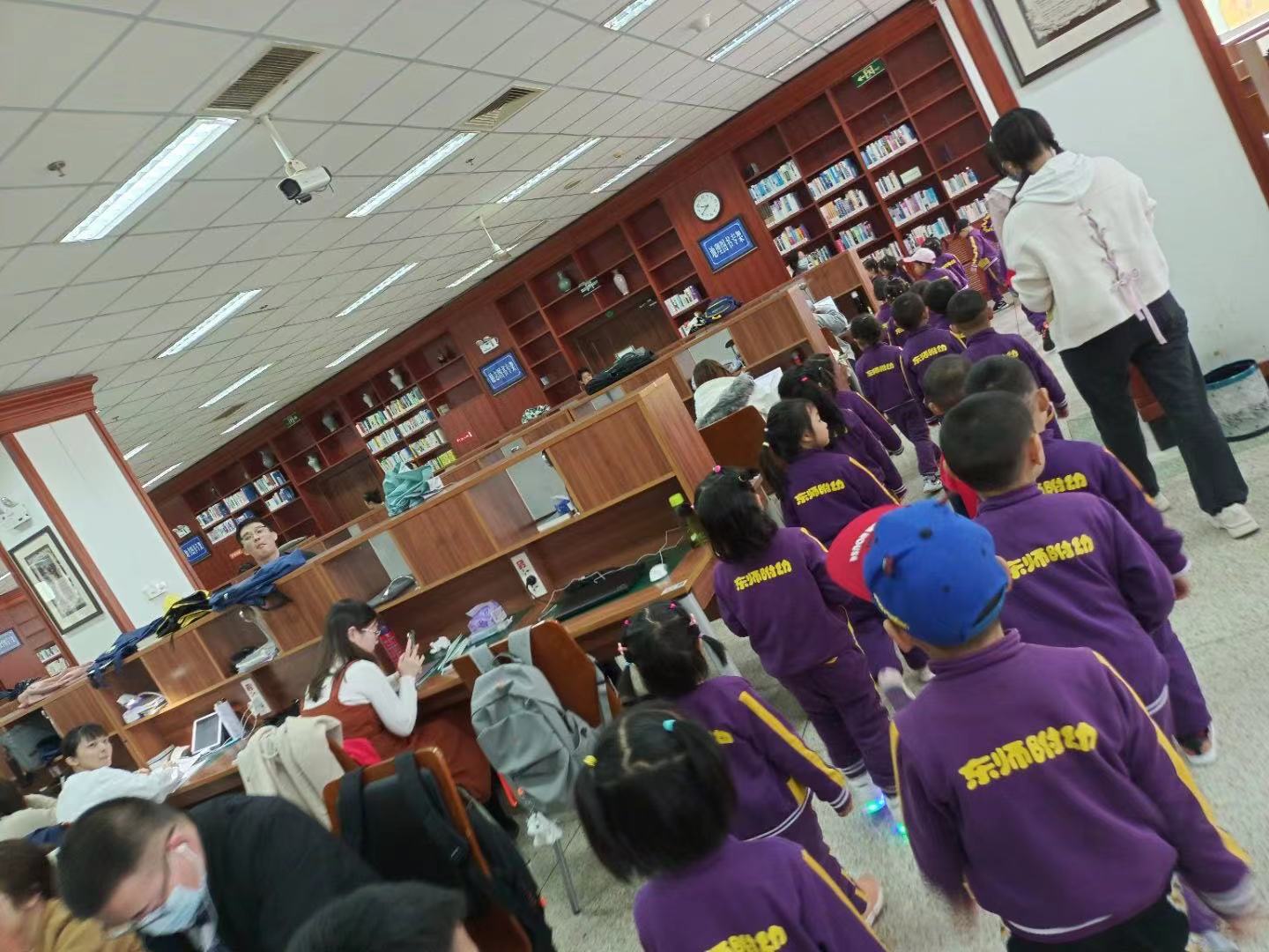 宝贝们整装待发,我们踏着轻快的步伐,排着整齐的队伍来到了图书馆,开启了期待已久的参观之旅。